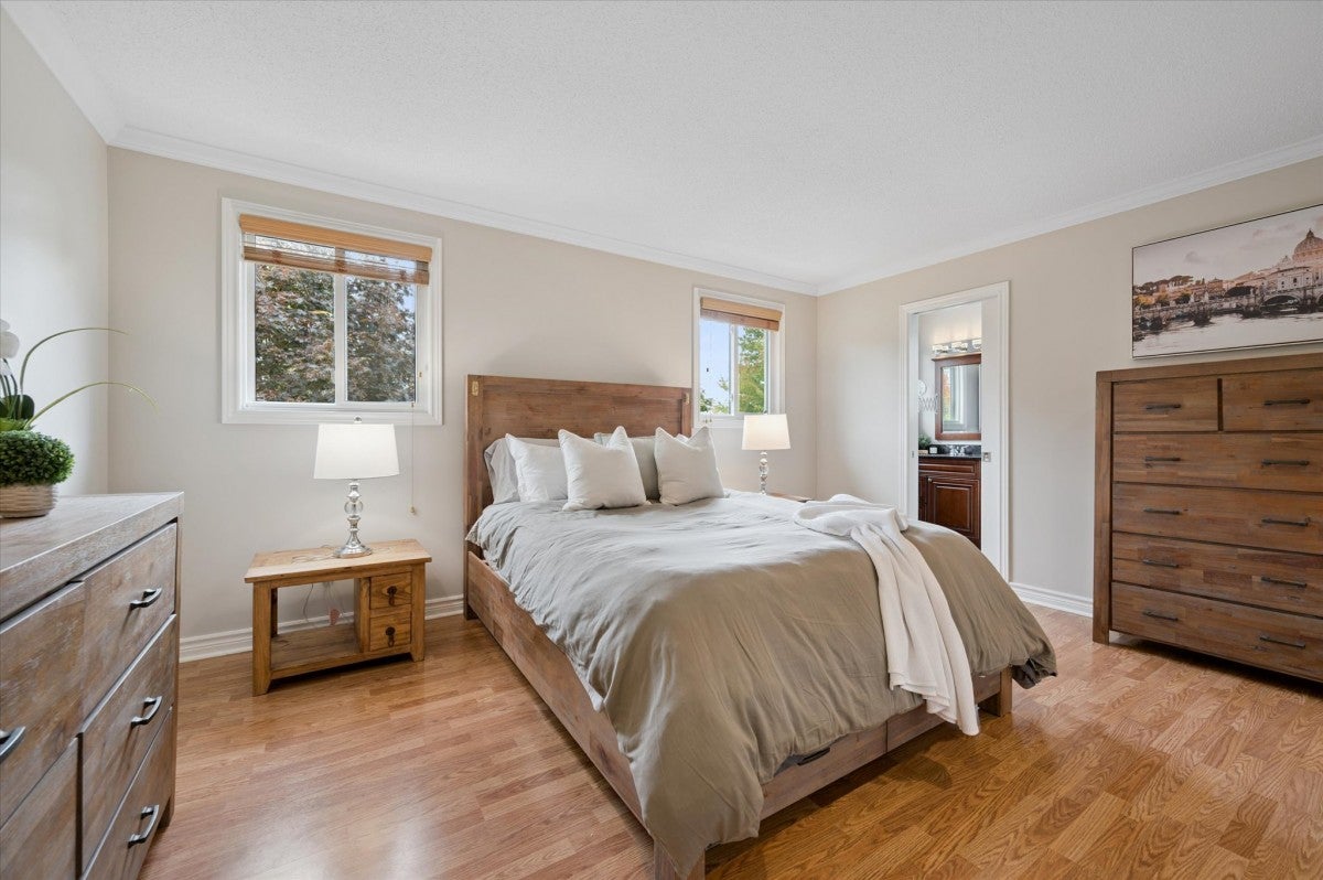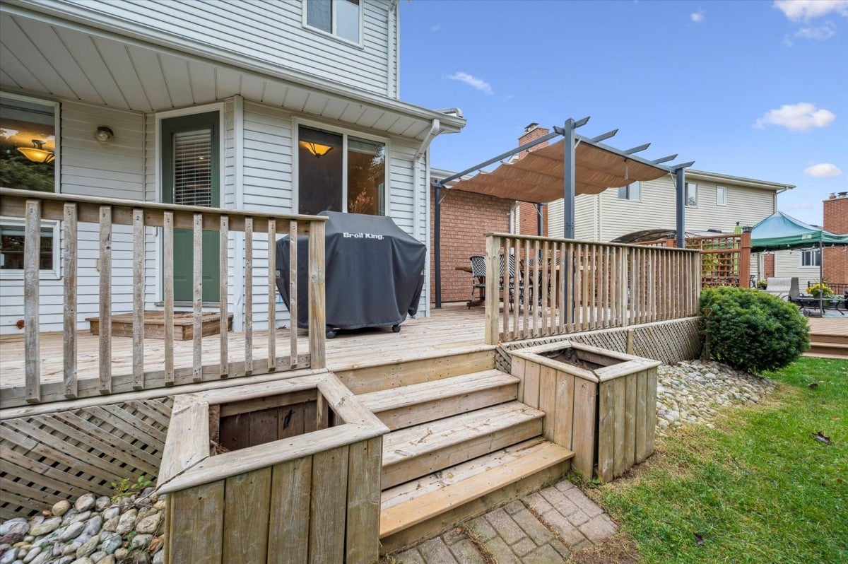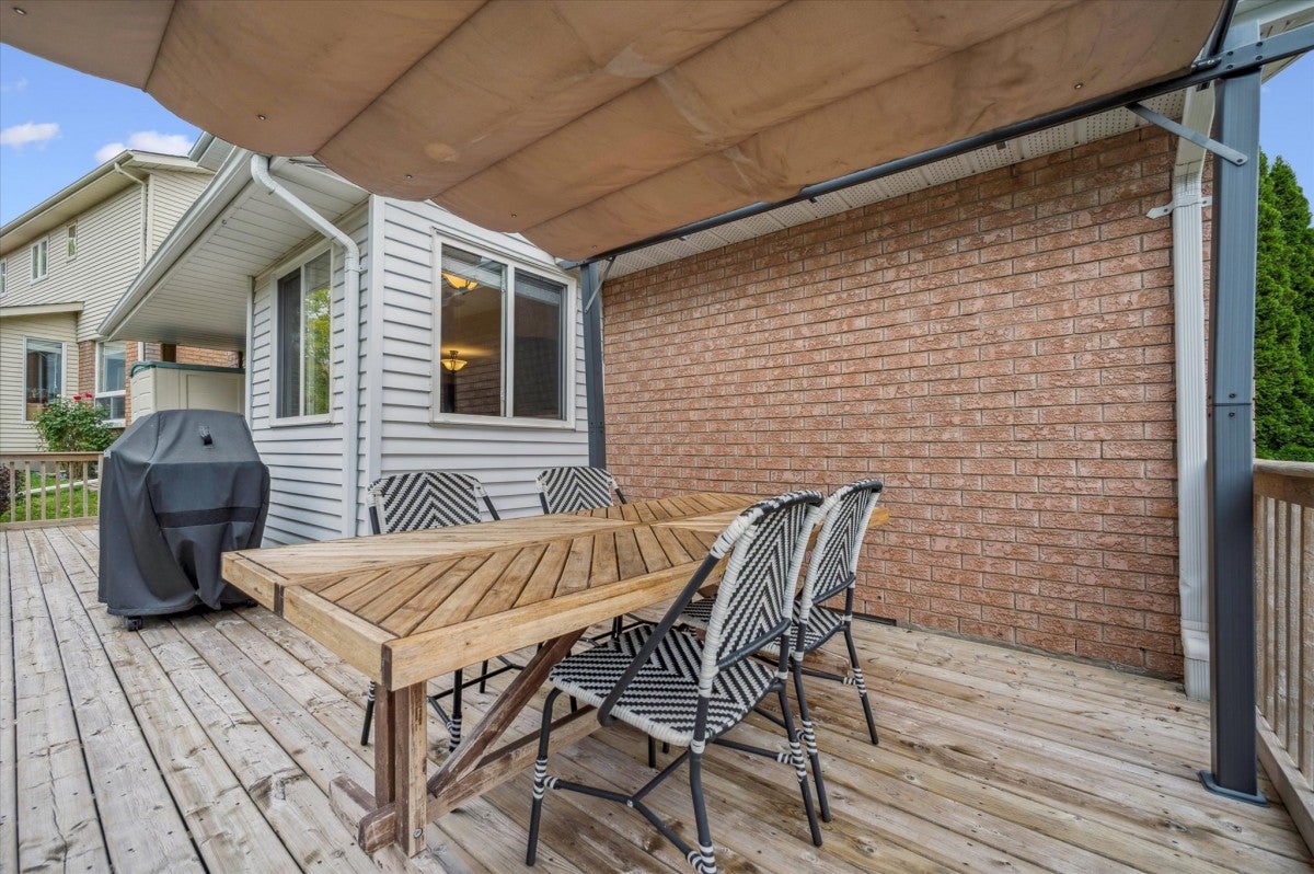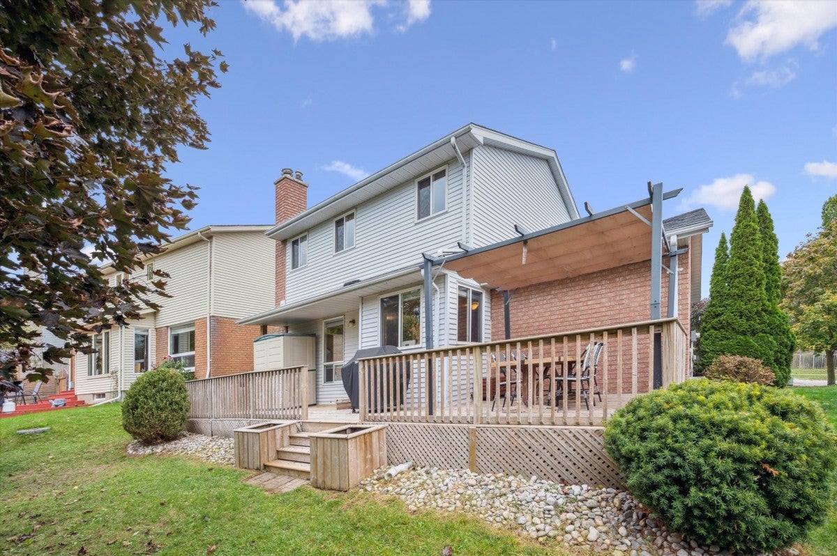 Check everything off your list! Located on a mature boulevard steps from the Grand River, this updated family home is situated just steps from the parks and trails of beautiful Chicopee! Welcome inside the foyer, open to a bright and oversized living room with vaulted ceiling, perfect for families who value living space and entertaining. The kitchen features timeless cabinetry and stainless appliances with trendy geometric backsplash. The separate dining room has a cozy fireplace and lovely backyard views of mature trees and the nearby Chicopee Vale trail. A garden door on this level leads to a huge deck that extends across the back of the home, and includes a handy gas line for your BBQ. Once back inside, the main level also has a convenient laundry room and powder room. Upstairs are three large bedrooms, including the primary with dual closets and an ensuite featuring granite vanity and separate tub and shower. An additional updated four piece bathroom is down the hall. BONUS! The finished lower level with gas fireplace is perfect for hosting extended family and has a huge recreation room with additional bedroom or office and large finished walk-in storage area. Lovely curb appeal and double car garage. Minutes from excellent schools, popular shopping, restaurants and the 401. A spacious family home presenting an amazing opportunity in a fantastic neighbourhood!