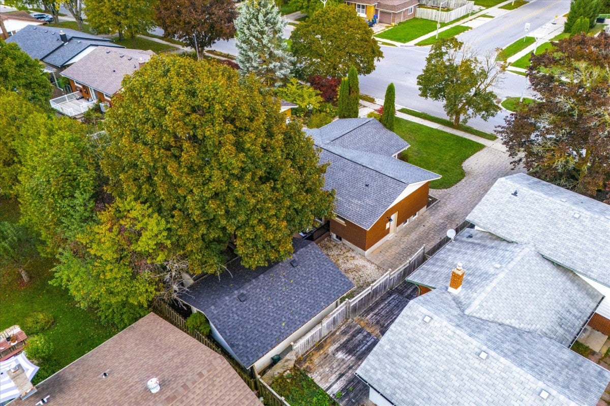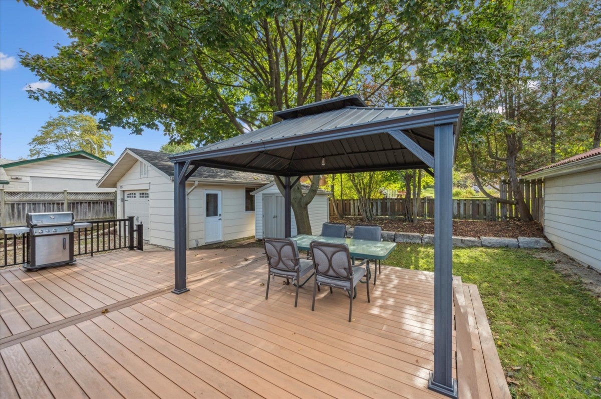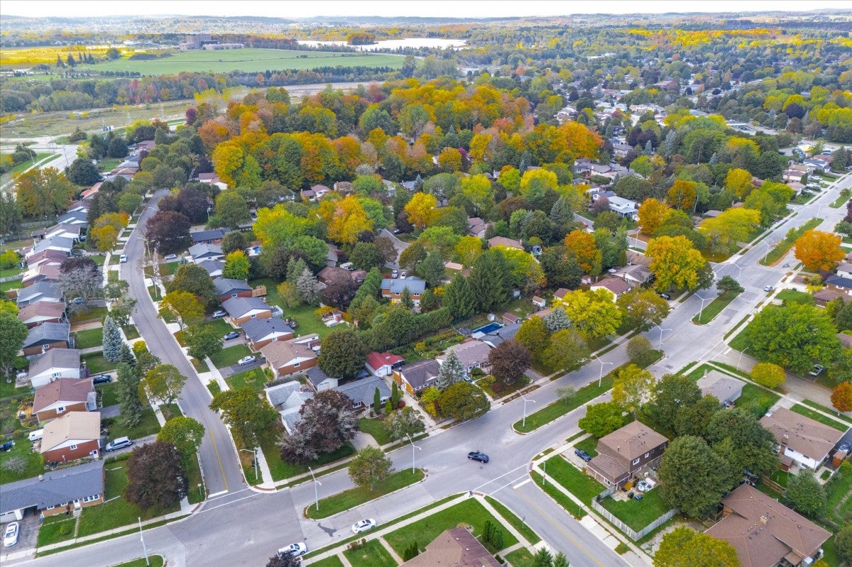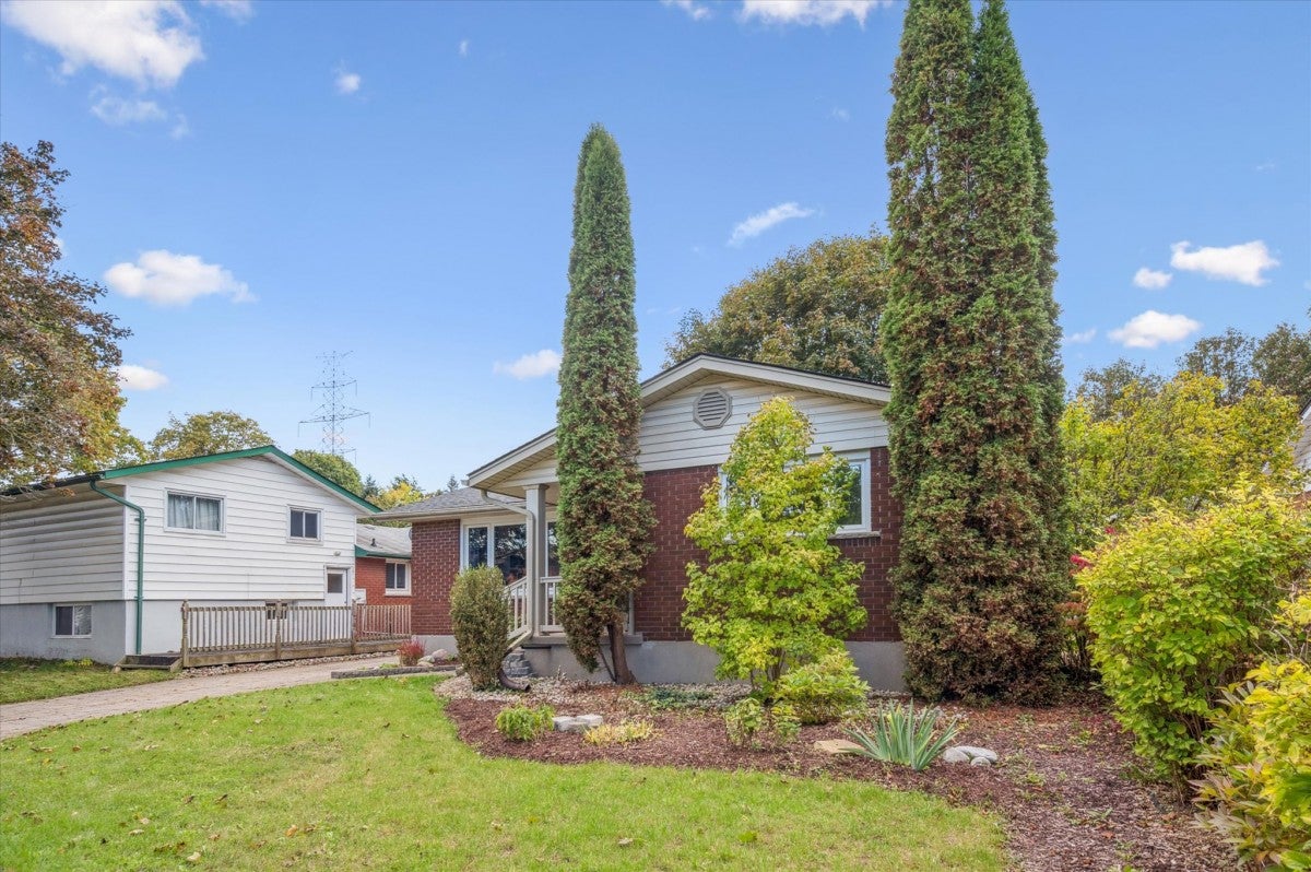 Check everything off your list! Situated on a large lot with a DETACHED 17' x 20' WORKSHOP/GARAGE and plenty of parking, this mid century bungalow with amazing curb appeal is conveniently located minutes from parks, schools and all the best amenities of west Waterloo! This classic layout for main floor living features a spacious living room with built-ins and cozy fireplace with large, bright windows and excellent views of the mature streetscape. Three bedrooms are down the hall (including the primary with new flooring in 2025), along with a handy three piece bathroom nearby. The retro eat-in kitchen has plenty of cabinet and counter space, a new dishwasher (2025), and a lovely window with views of pretty landscaping and a large composite deck with gazebo (2022). Sliders from the dining area lead to a private backyard with armor stone retaining wall (2023) and BONUS: DETACHED GARAGE/WORKSHOP perfect for hobbyists! This insulated garage/workshop area features a new garage door (2025), roof, man door & windows (all 2024), heater (2022) and french cleat tool wall! Once back inside the main floor living space is replicated on the lower level, and includes a separate side door entrance with the potential for extended family or income! This fully finished space includes a recreation room with bar area and gas fireplace, a bedroom, office or exercise space, laundry room and a four piece bathroom. Additional updates include Furnace, A/C and water softener (all 2021) and re insulation of attic (2023) . The perfect opportunity to plant roots on a mature and friendly tree lined street in a great location!