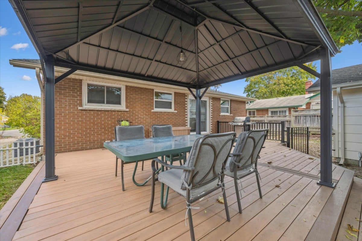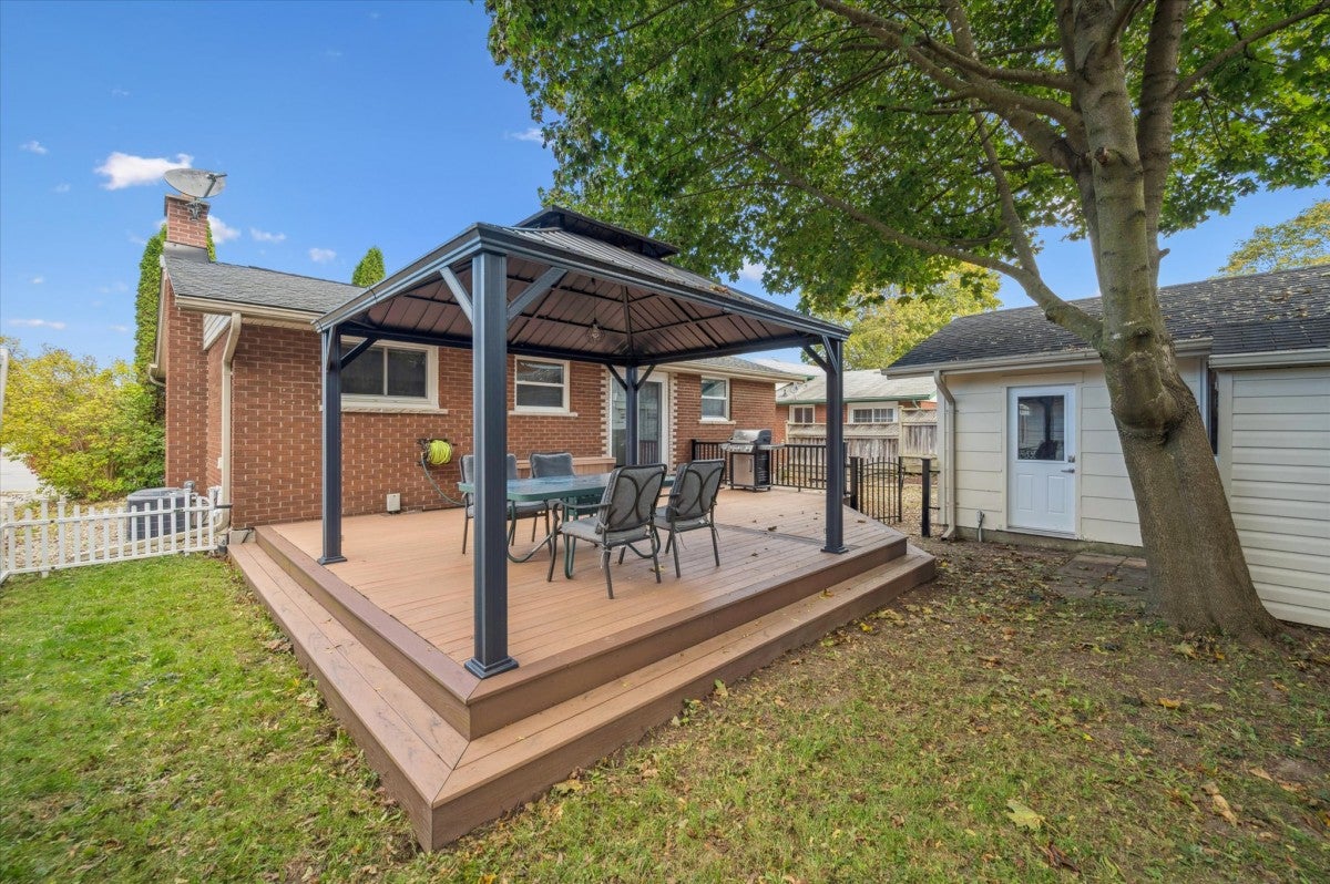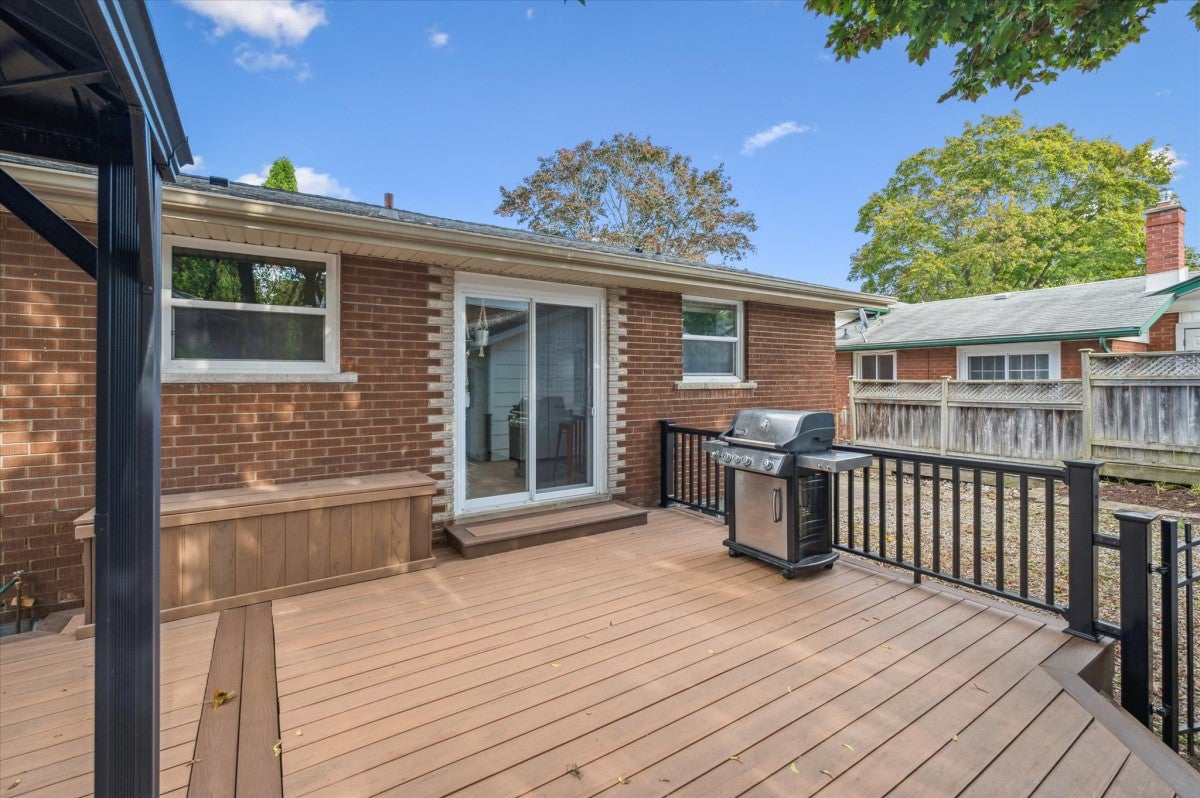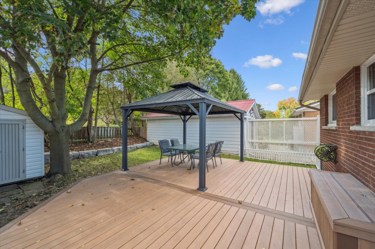 Check everything off your list! Situated on a large lot with a DETACHED 17' x 20' WORKSHOP/GARAGE and plenty of parking, this mid century bungalow with amazing curb appeal is conveniently located minutes from parks, schools and all the best amenities of west Waterloo! This classic layout for main floor living features a spacious living room with built-ins and cozy fireplace with large, bright windows and excellent views of the mature streetscape. Three bedrooms are down the hall (including the primary with new flooring in 2025), along with a handy three piece bathroom nearby. The retro eat-in kitchen has plenty of cabinet and counter space, a new dishwasher (2025), and a lovely window with views of pretty landscaping and a large composite deck with gazebo (2022). Sliders from the dining area lead to a private backyard with armor stone retaining wall (2023) and BONUS: DETACHED GARAGE/WORKSHOP perfect for hobbyists! This insulated garage/workshop area features a new garage door (2025), roof, man door & windows (all 2024), heater (2022) and french cleat tool wall! Once back inside the main floor living space is replicated on the lower level, and includes a separate side door entrance with the potential for extended family or income! This fully finished space includes a recreation room with bar area and gas fireplace, a bedroom, office or exercise space, laundry room and a four piece bathroom. Additional updates include Furnace, A/C and water softener (all 2021) and re insulation of attic (2023) . The perfect opportunity to plant roots on a mature and friendly tree lined street in a great location!