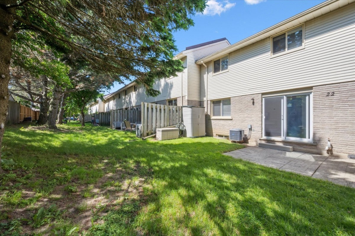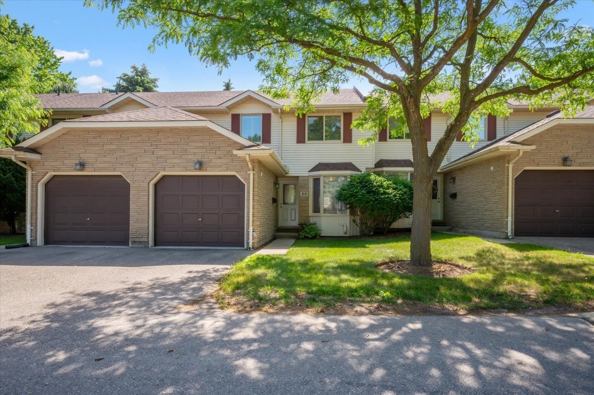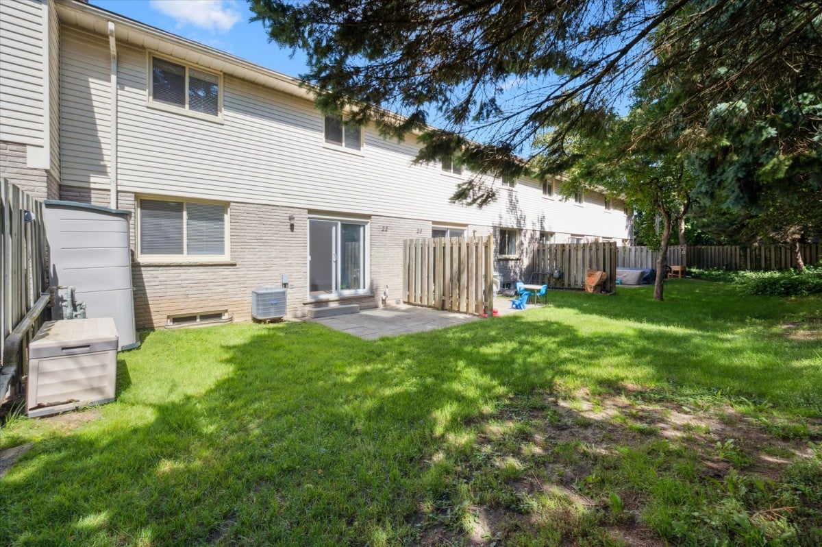 Check everything off your list! Amazing Colonial Acres location! This three bedroom townhome has been carefully maintained and features an excellent open concept floorplan and tons of natural light! Step inside the welcoming foyer, open to a bright kitchen with white shaker cabinetry, sleek stainless steel appliances (2024) and separate breakfast area. The main floor has modern textured floors and new baseboards througout, and features an oversized living/dining room with sliders to a convenient and private patio area and backyard with mature trees. An updated two piece powder room rounds off this level. Upstairs are three large bedrooms including a huge primary with an oversized walk-in closet. The four piece bathroom has been updated and is just down the hall. The lower level is the future home to a spacious recreation room, and is currently used as a convenient laundry space with tons of storage. Cute curb appeal with garage parking and an additional driveway space. Located just a few minutes walk from handy amenities at Conestoga Mall, including the convenient LRT. Just steps away from parks, trails and restaurants. An excellent opportunity to own an updated home in one of WaterlooÂ’s best neighbourhoods!