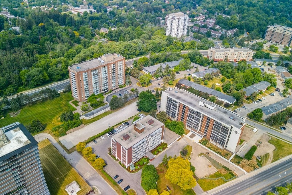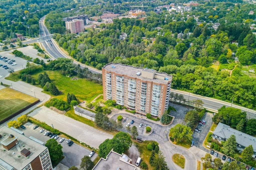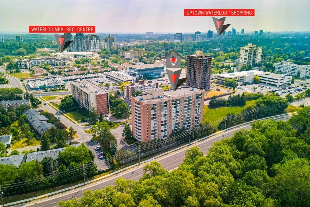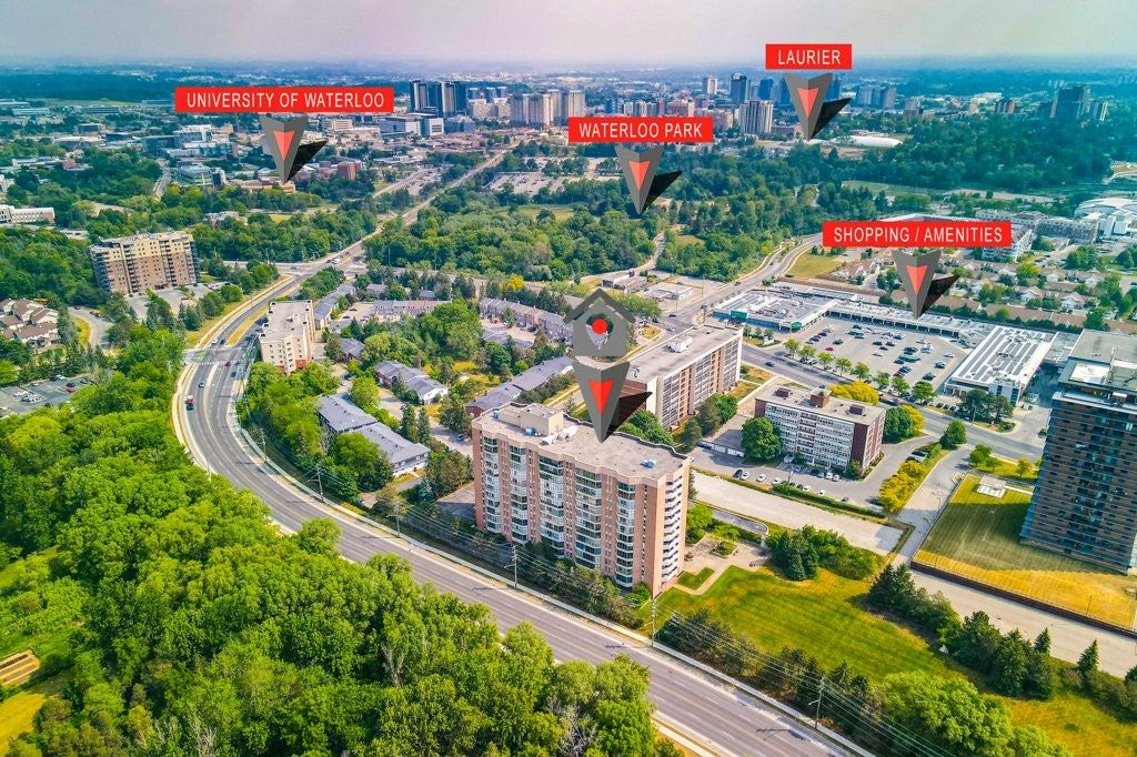Check everything off your list! For over 25 years the same owners have loved and cared for this rare THREE bedroom END UNIT with BALCONY, located in an executive building just minutes from Uptown Waterloo's best amenities! Step inside the foyer, to a thoughtfully designed floorplan! The white shaker kitchen features plenty of cabinetry including a handy pantry, undercabinet lighting , stainless steel appliances and bonus built-in desk area! The adjacent separate dining area is the perfect space to host guests. The large, bright living room is open to a sunroom with floor to ceiling windows! The primary bedroom is nearby, complete with double closets, built in shelving as well as an ensuite bathroom. Just down the hall are two more bedrooms, one featuring hardwood floors that could be the perfect office space/sitting room with balcony access and lovely views. An additional four piece bathroom is just down the hall. Rounding off the floorplan is a spacious laundry/storage room. This unit also includes an underground parking space (conveniently located right by the entrance doors!) as well as handy a storage locker. An excellent opportunity in an amazing location.