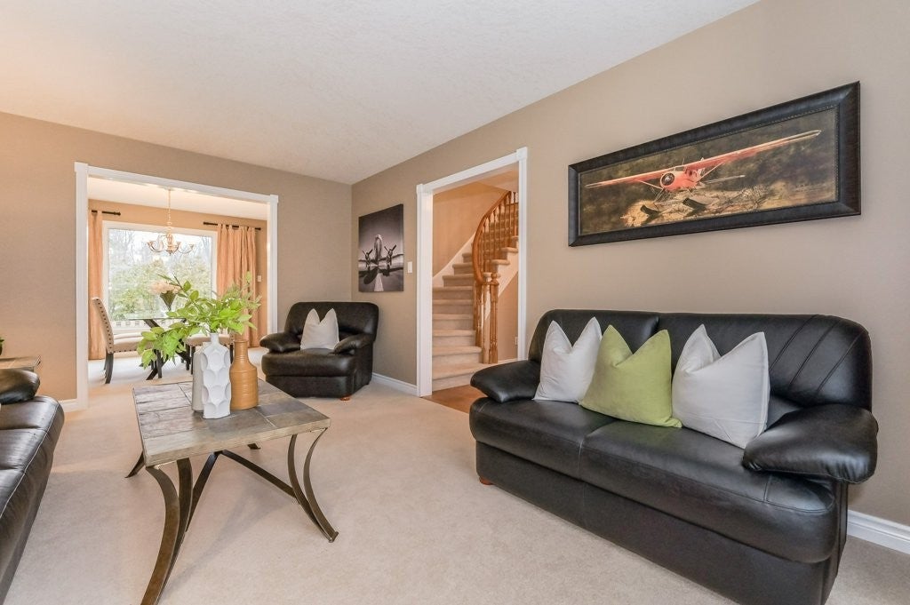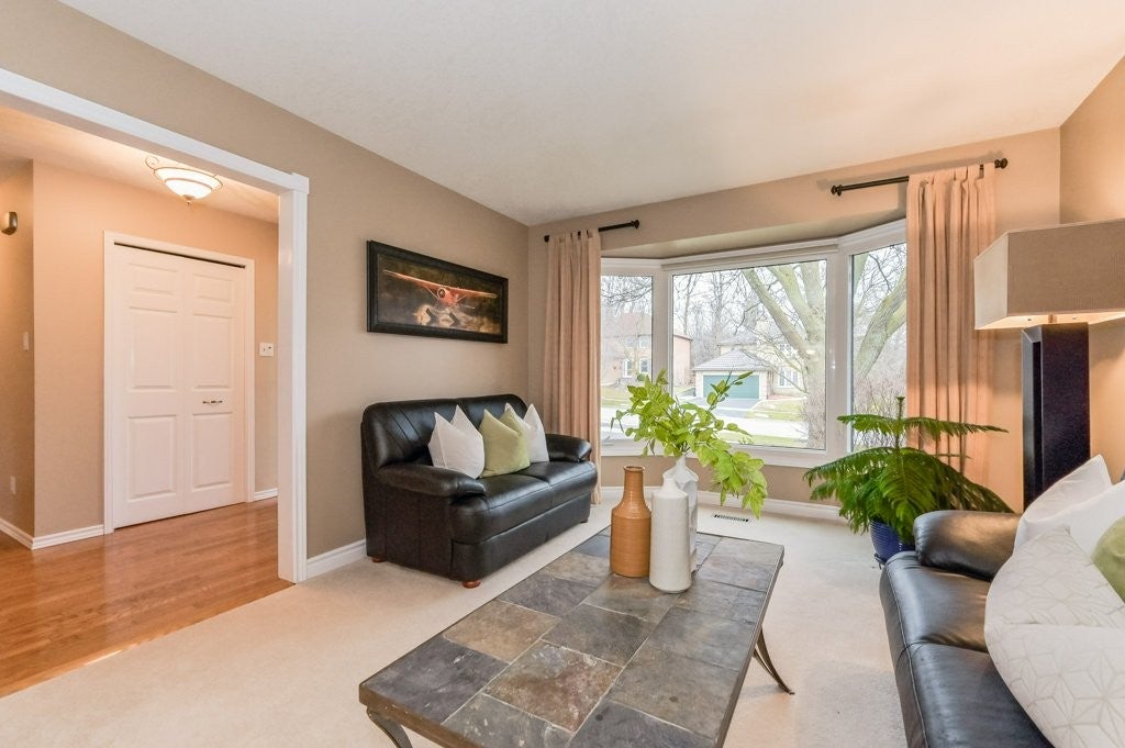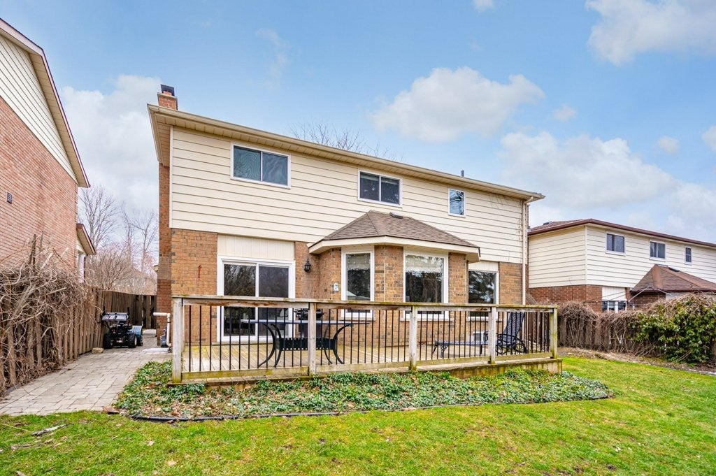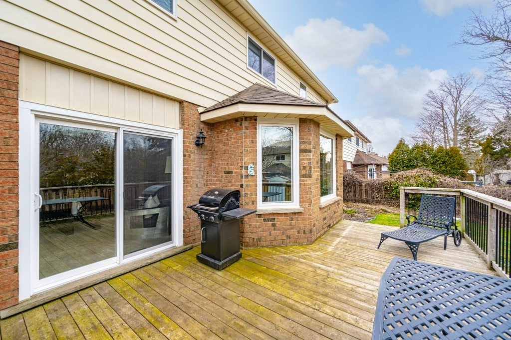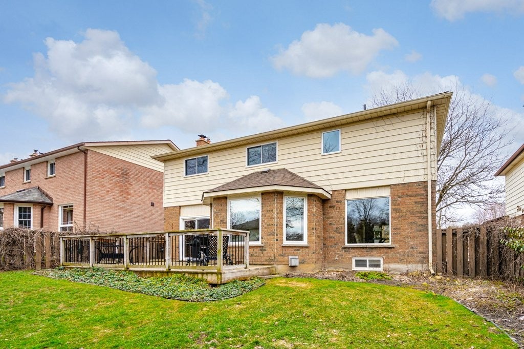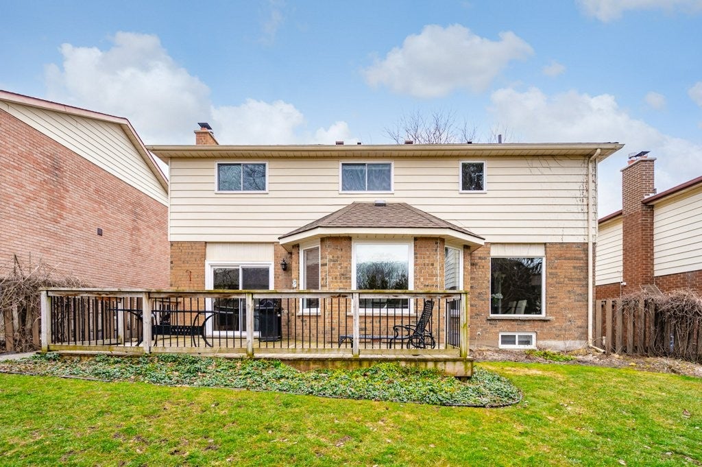 Check everything off your list! Located in friendly Beechwood Forest on a large lot, this immaculate family home has serene views of mature forest and is a stoneÂ’s throw from the popular walking trails of Monarch Woods! Step inside the foyer to a thoughtful centre hall plan, perfect for families who value living space and entertaining. The living room features large bright windows and is open to a convenient dining room or potential home office space. The updated eat-in kitchen features plenty of classic shaker cabinetry with crown moulding, granite counters, and sleek black appliances. An additional family room space with cozy fireplace and built-ins is nearby. Down the hall is a convenient laundry room with upper cabinetry and garage access. An updated powder room is tucked away. Upstairs features four large bedrooms, including the primary with hardwood floors, walk-in closet and handy ensuite. An additional four piece bathroom is just down the hall. The lower level is completely finished, with a large recreation room with gas fireplace, extra bedroom or office, two piece bathroom and plenty of storage space. The beautifully landscaped private backyard is fully fenced, with large entertainer's deck. Additional updates include Roof (2015), windows (2010), garage door (2020) and interlocking walkway (2016). Minutes from excellent elementary schools, transit, and the popular shopping and restaurants at the Boardwalk. An amazing opportunity for a beautiful home in a fantastic neighbourhood!