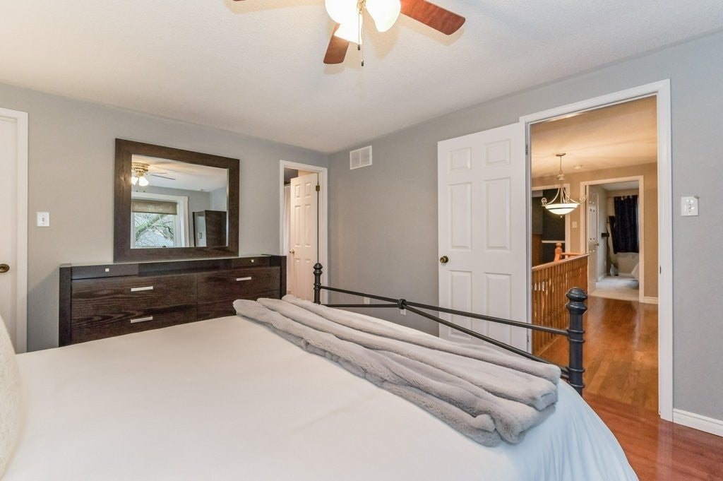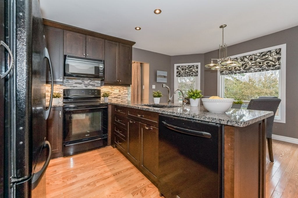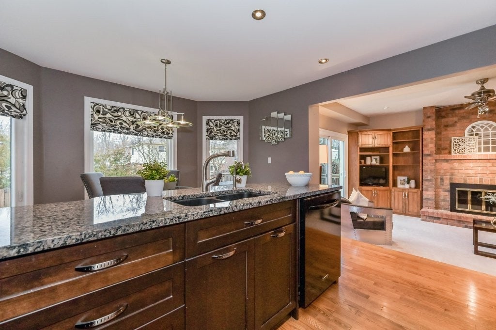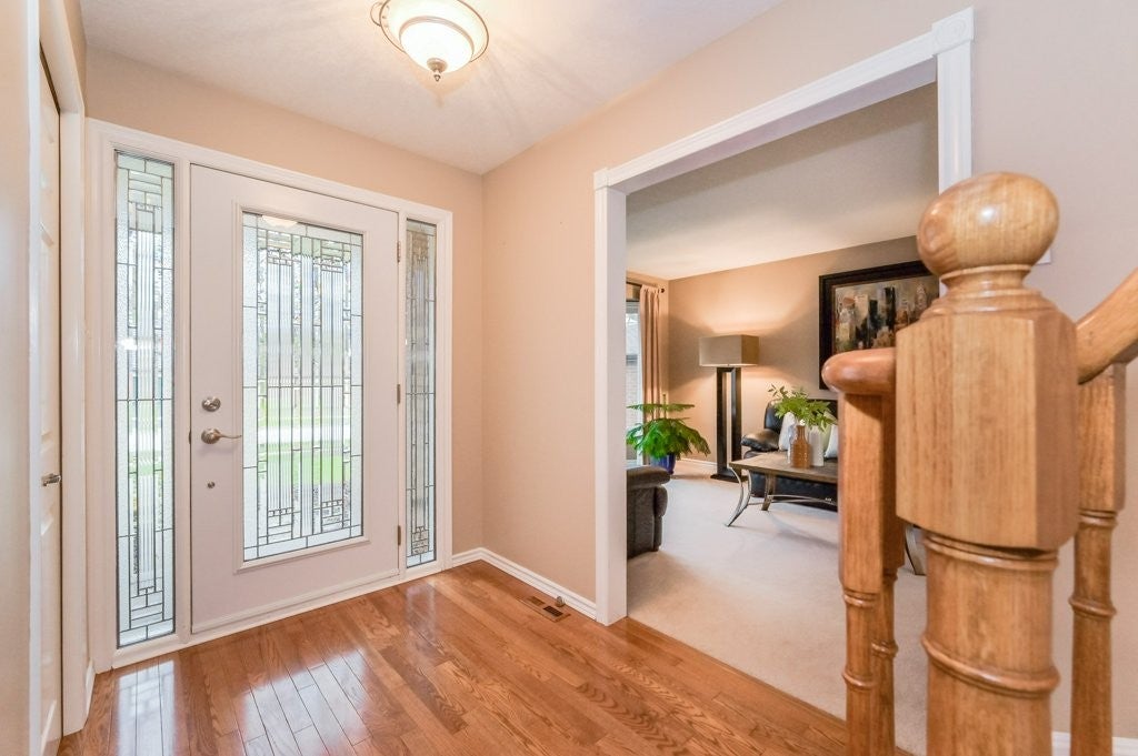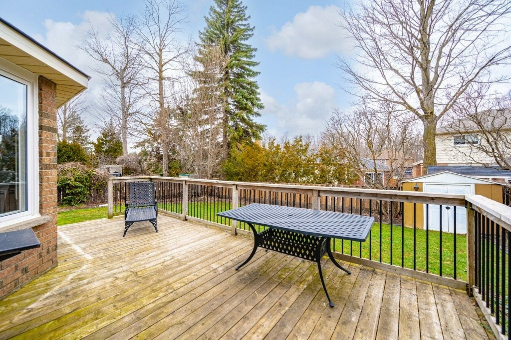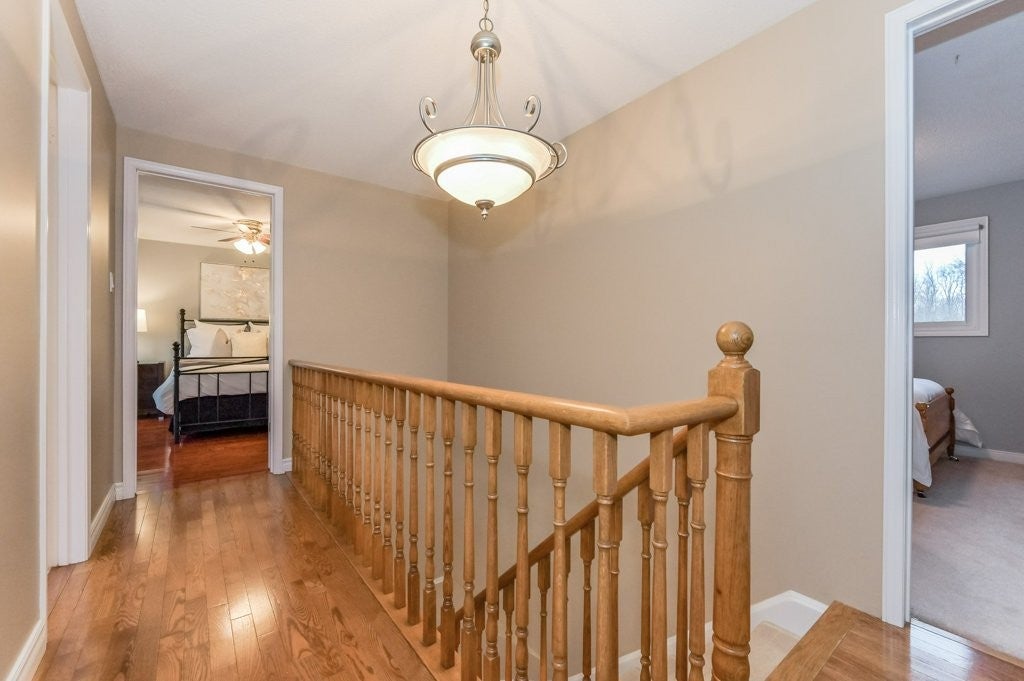 Check everything off your list! Located in friendly Beechwood Forest on a large lot, this immaculate family home has serene views of mature forest and is a stoneÂ’s throw from the popular walking trails of Monarch Woods! Step inside the foyer to a thoughtful centre hall plan, perfect for families who value living space and entertaining. The living room features large bright windows and is open to a convenient dining room or potential home office space. The updated eat-in kitchen features plenty of classic shaker cabinetry with crown moulding, granite counters, and sleek black appliances. An additional family room space with cozy fireplace and built-ins is nearby. Down the hall is a convenient laundry room with upper cabinetry and garage access. An updated powder room is tucked away. Upstairs features four large bedrooms, including the primary with hardwood floors, walk-in closet and handy ensuite. An additional four piece bathroom is just down the hall. The lower level is completely finished, with a large recreation room with gas fireplace, extra bedroom or office, two piece bathroom and plenty of storage space. The beautifully landscaped private backyard is fully fenced, with large entertainer's deck. Additional updates include Roof (2015), windows (2010), garage door (2020) and interlocking walkway (2016). Minutes from excellent elementary schools, transit, and the popular shopping and restaurants at the Boardwalk. An amazing opportunity for a beautiful home in a fantastic neighbourhood!