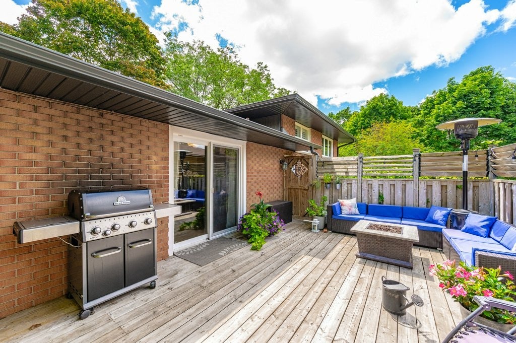 Check everything off your list! This adorable sidesplit is full of updates and is located on an oversized pool sized lot on quiet and friendly Waterloo cul de sac! Step inside the bright multi level floorplan, with warm textured floors, updated windows (2020) and plenty of room for entertaining. The first level is perfect for hosting guests with a spacious chefÂ’s kitchen with large breakfast bar, stainless steel appliances and convenient pantry open to an adjacent dining room. A handy built-in work from home/office space is nearby. Just a few steps down from this level is a spacious and bright family room; a perfect cozy place for watching a movie or reading a book. Upstairs are three bedrooms and an updated four piece bathroom. A laundry room, two piece bathroom, and additional future living space/home gym complete the lower level. Living space continues outside with an amazing deck and private backyard utopia, with privacy wall and horizontal louvres. The large side yard could be fenced for the possibility of a future pool or additional outdoor entertainment space. The property has been beautifully landscaped with gardens and perennials. Additional updates include siding/eavetroughs/fascia (2021), side door (which can provide a separate entrance to the lower level, 2021), garage door & roof (2016). Walking distance to shopping, restaurants, parks and a quick drive to the expressway, Uptown Waterloo & University of Waterloo. Tons of curb appeal and an excellent opportunity for a well maintained home in a fantastic neighbourhood!