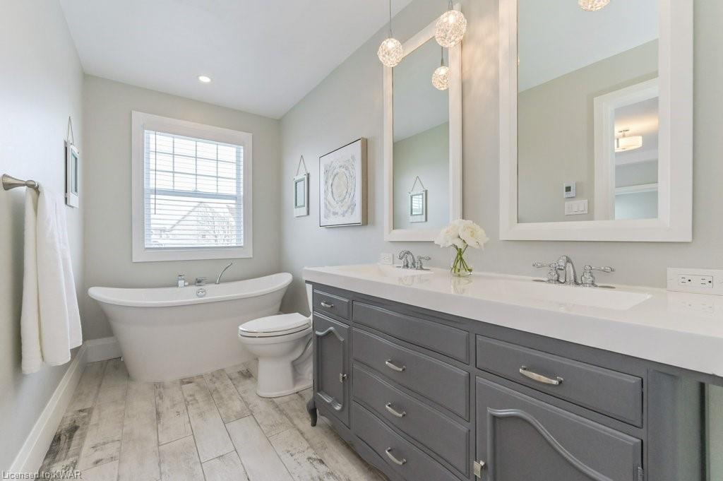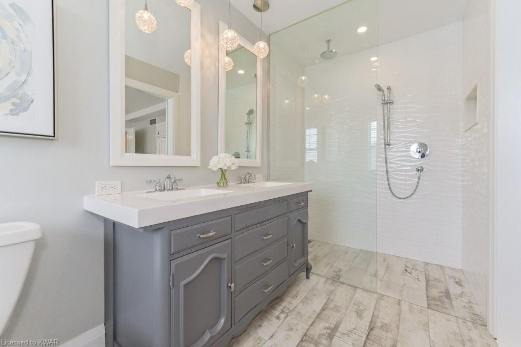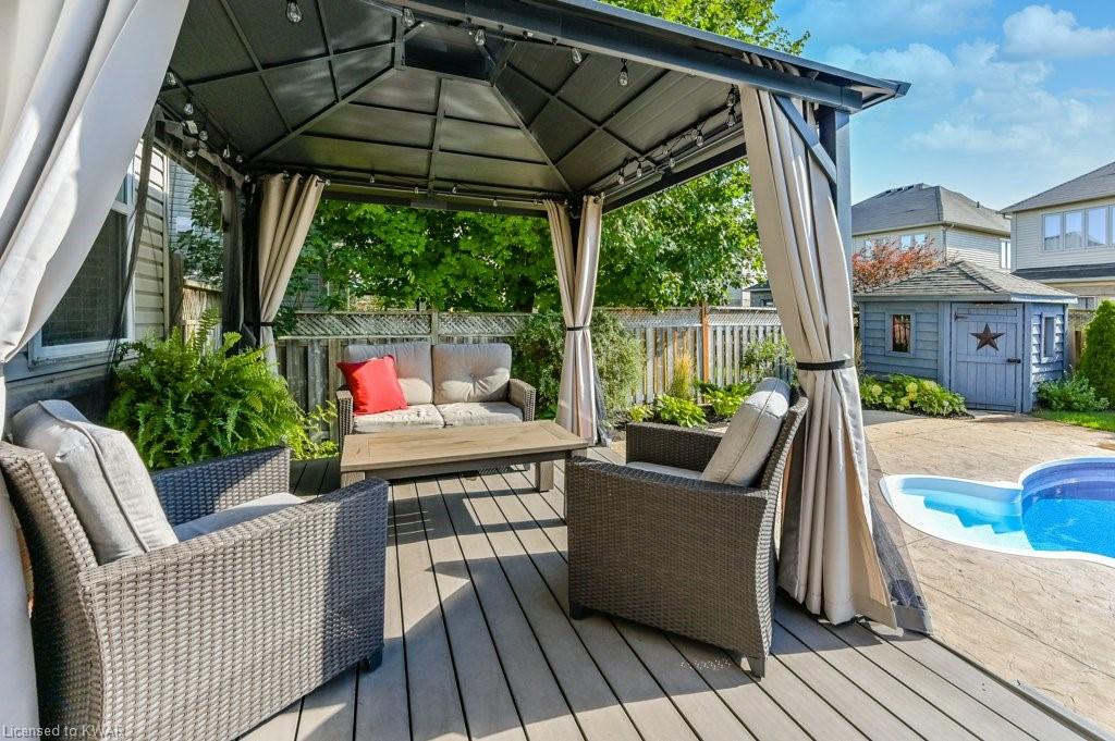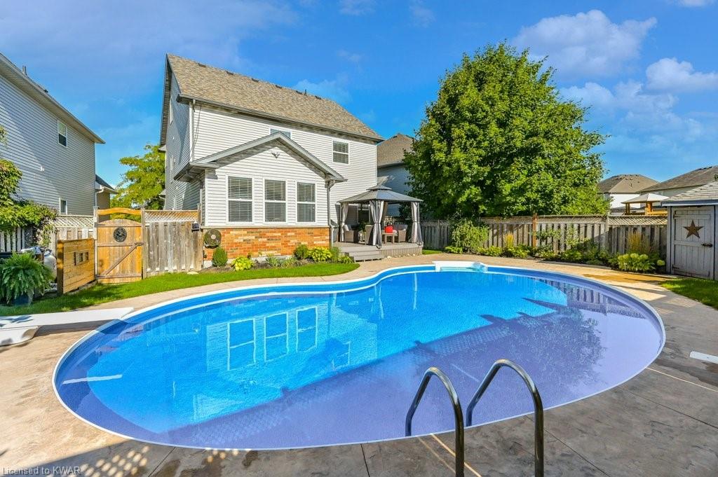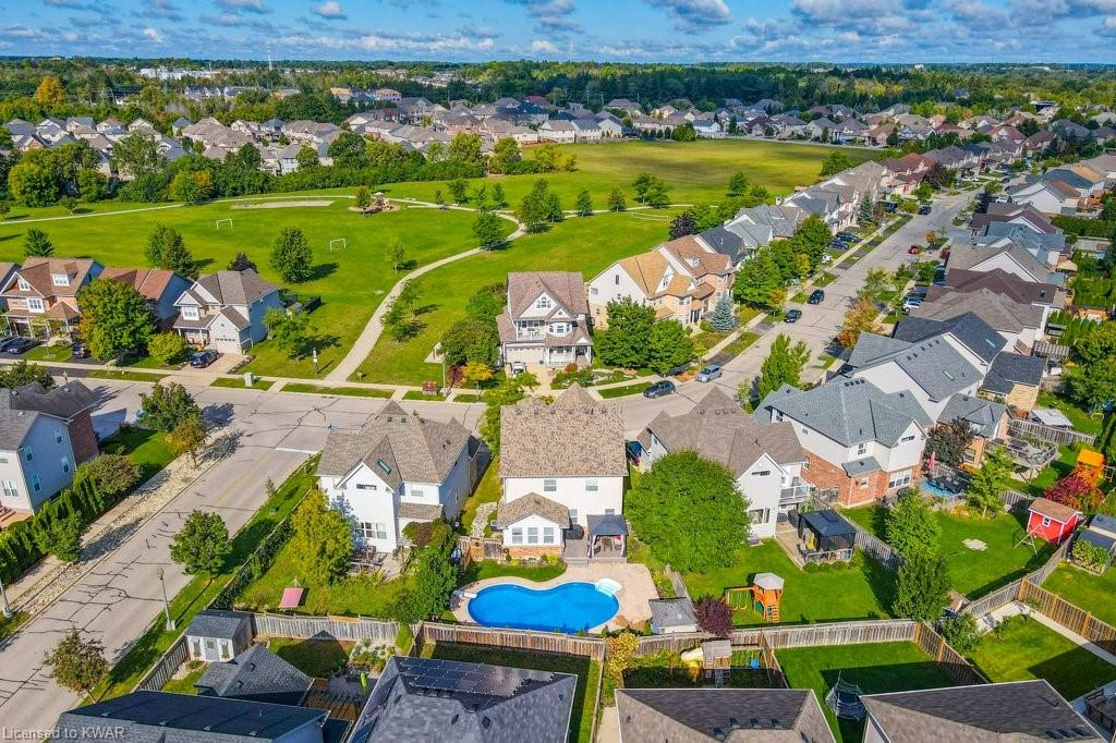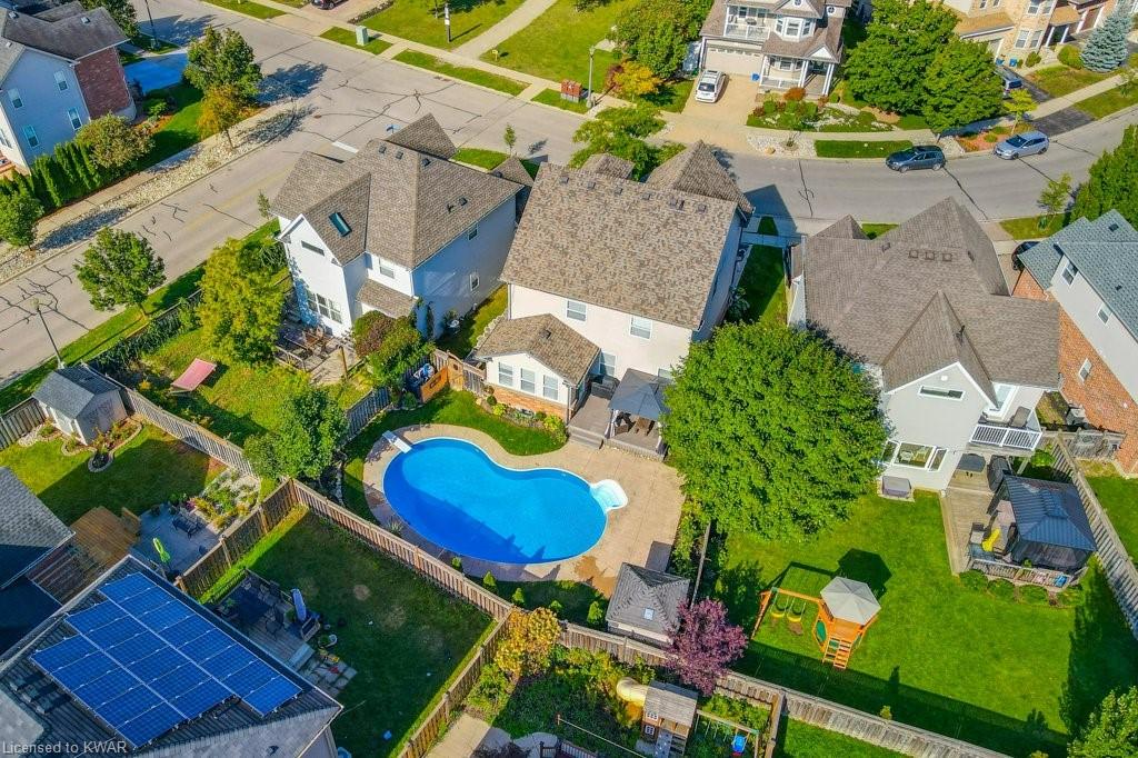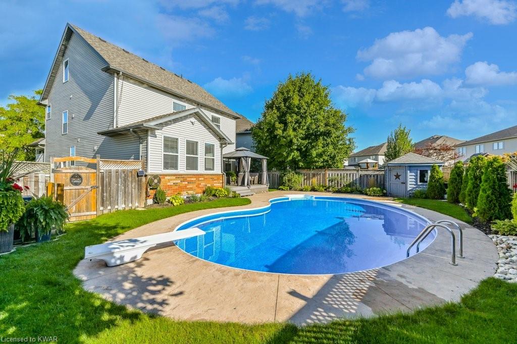 Check everything off your list! ** INGROUND SWIMMING POOL AND HUGE FINISHED LOFT!** Located in friendly Kiwanis Park, this classic family home has peaceful views of River Ridge Park and is just steps from the extensive Walter Bean Trail and the Grand River! Step inside the bright main floor featuring popular open concept living and dining, warm hardwood flooring, board and batten feature wall and oversized windows. The chef's kitchen has classic white shaker cabinetry and a large quartz island perfect for entertaining. Plenty of counter space, subway tile backsplash and stainless steel appliances including a gas stove and double door refrigerator included. Down the hall and conveniently tucked away is a two piece powder room. The second level features a large primary bedroom with window seat and walk-in closet. The spa ensuite is complete with quartz vanity with dual sinks, oversized tiled shower with glass door, and stand alone tub. Down the hall are two more spacious bedrooms (one with board and batten feature wall), with use of their own updated four piece bathroom. Completing this level is a convenient laundry room with storage cabinetry. Living space continues with a BONUS: a fully finished upper level loft! This level is an ideal work from home space (check out the park views) or a cozy place to entertain. The basement level is also entirely finished, with a large recreation room, a bedroom, and a three piece bathroom. Summer is around the corner, and the backyard is the perfect relaxation space with a huge inground swimming pool! We've captured summer photos so along with the pool you can see the backyard's beautiful landscaping, large deck, and adorable garden shed! Close to excellent schools, the expressway, and minutes to everything you need at Conestoga Mall and East Waterloo's popular shopping and restaurants! An amazing opportunity for a beautiful home in a prestigious neighbourhood!