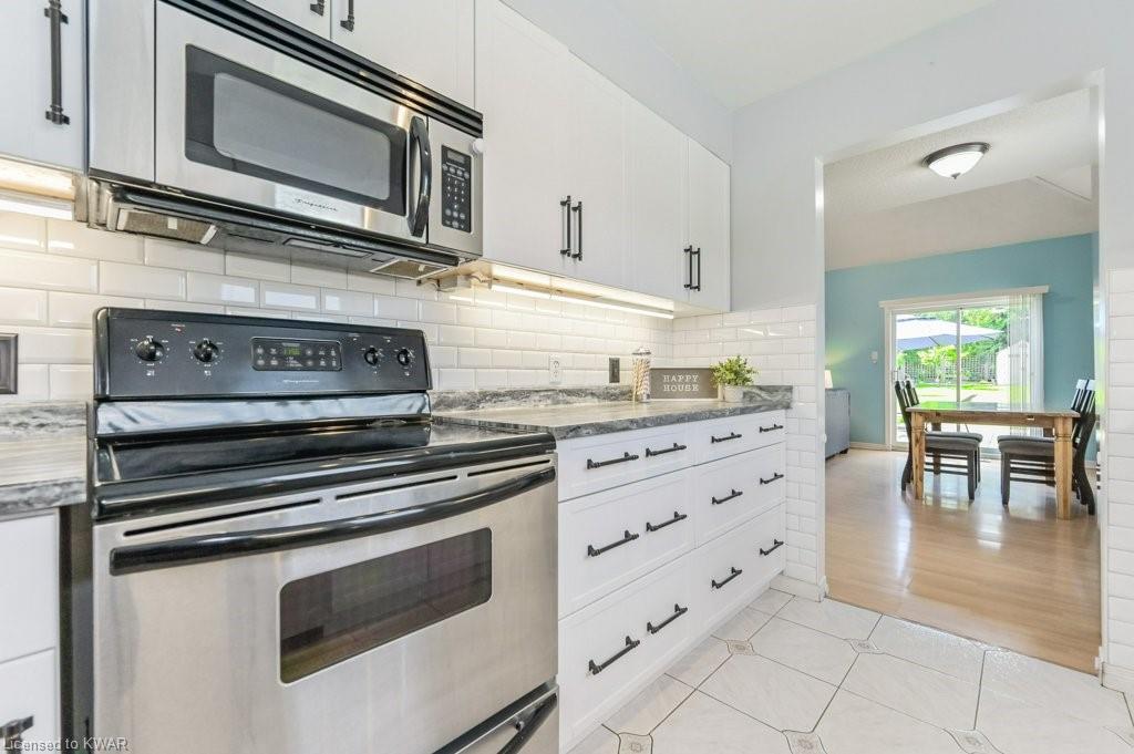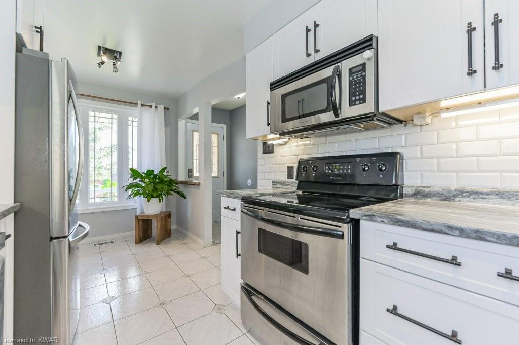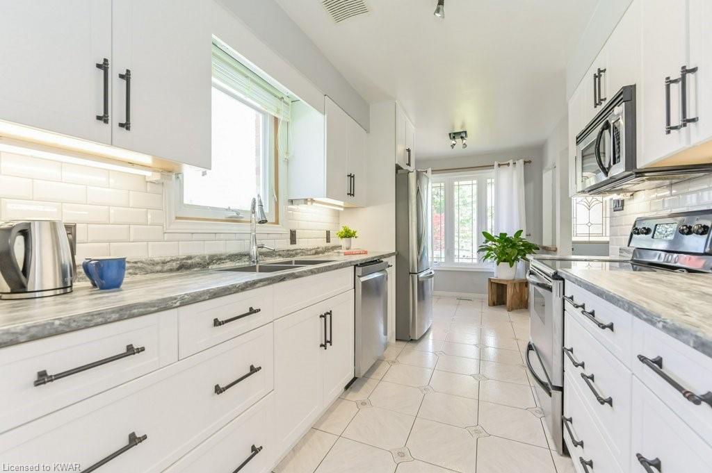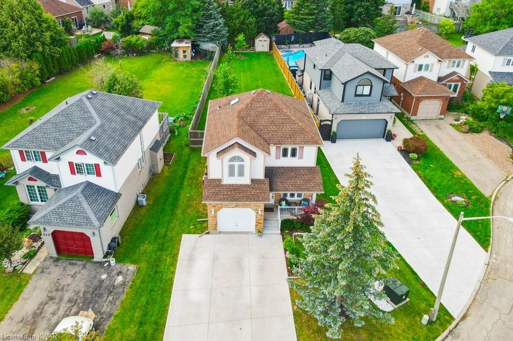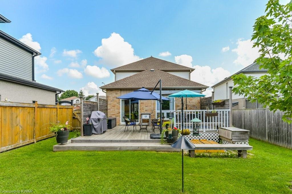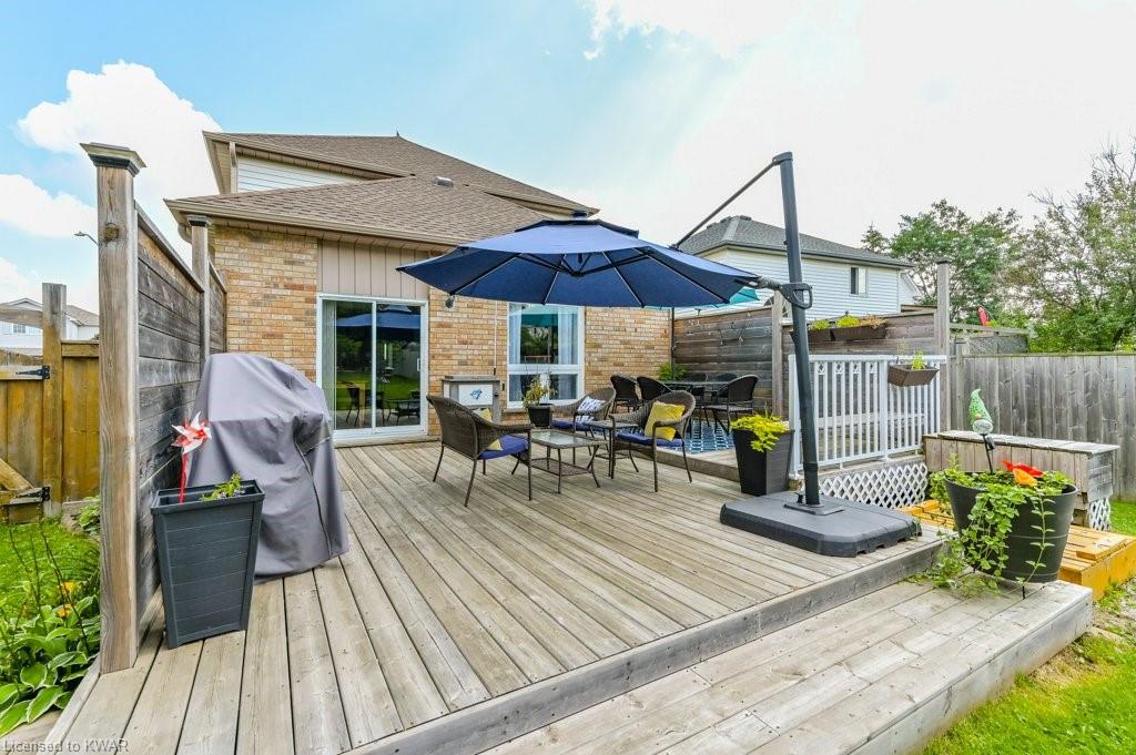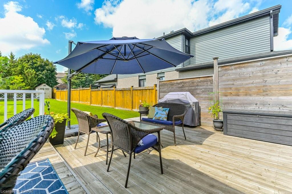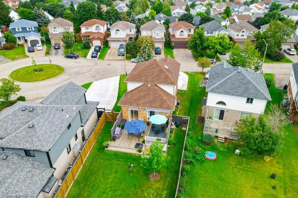 Check everything off your list! Situated on a HUGE POOL SIZED LOT, this wonderful family home is located on a friendly WATERLOO COURT close to parks, amenities and excellent schools! Step inside the spacious foyer, open to an updated kitchen with classic white shaker cabinets, sharp subway tile backsplash, and additional breakfast area with views of the mature streetscape. Conveniently tucked around the corner is a large hall closet and two piece bathroom. The open concept living and dining room features vaulted ceilings, beautiful bright windows, and sliders to an AMAZING fully fenced backyard retreat! Plenty of space for entertaining on your huge deck with awning, and room for a pool and enjoying activities like badminton, cornhole or horseshoes. The upstairs level features three spacious bedrooms and a four piece bathroom with bright skylight. The basement is fully finished with large recreation room, currently used as a family room, playroom and work from home office space. Plenty of storage and a large laundry room with additional cold cellar and bathroom rough-in. Additional updates include new eavestroughs and recently installed concrete driveway with parking for multiple vehicles. Convenient Waterloo location near the Boardwalk’s many restaurants and amenities. A perfect opportunity to own a lovely family home on a mature Waterloo court!