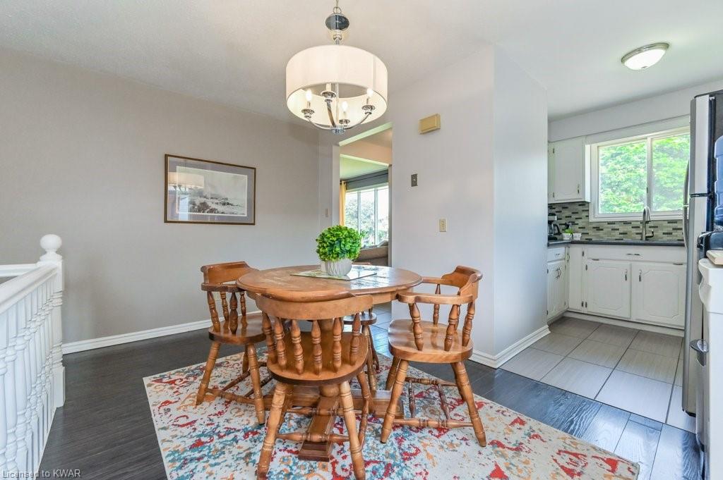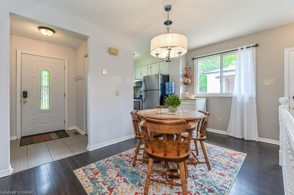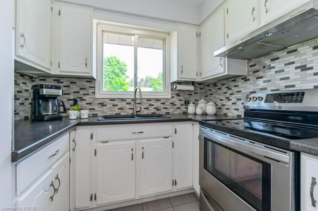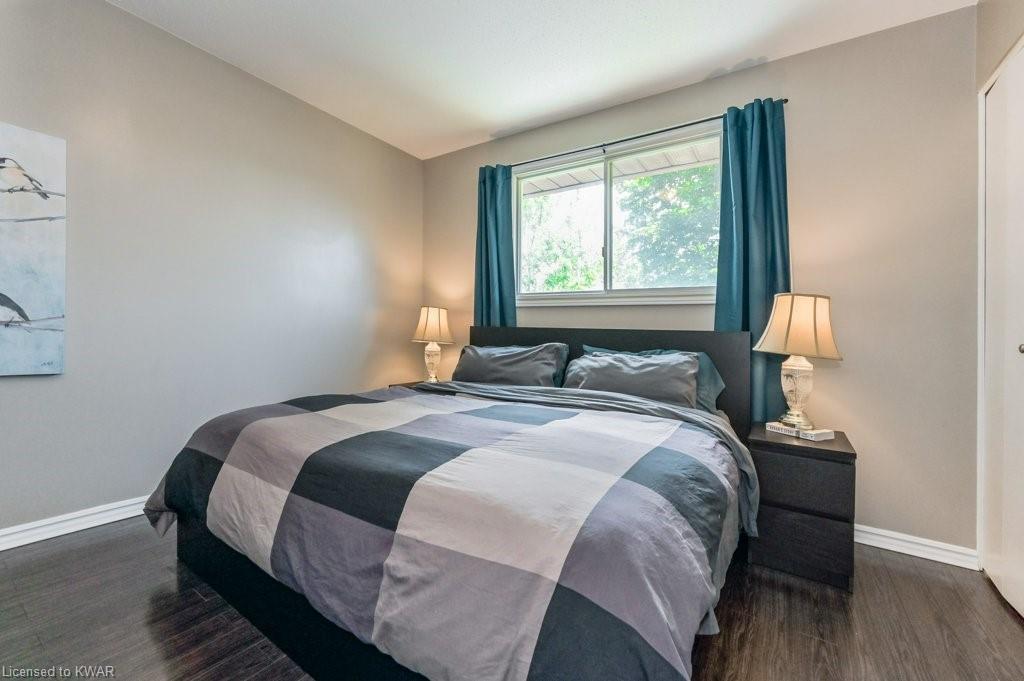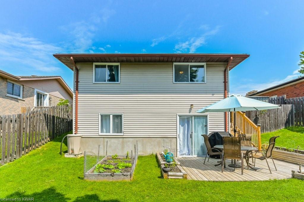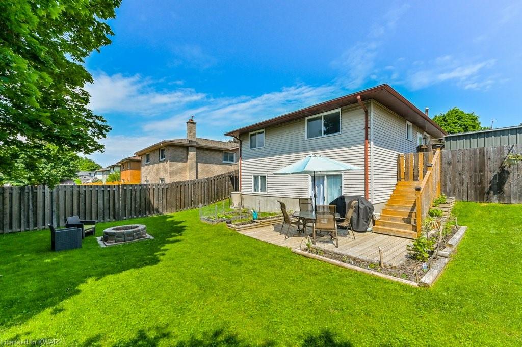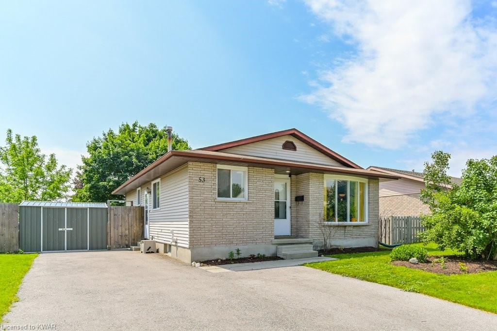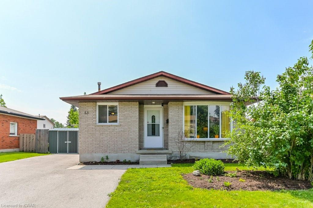 Check everything off your list! This adorable walkout bungalow is located on a friendly tree lined street steps from Milwood Park and close to the many amenities of Kitchener west! Step inside the bright foyer, open to a large living room with great views of the mature streetscape. The main floor is entirely carpet free, and features a kitchen with stainless steel appliances, open to a spacious dining room. Down the hall are three large bedrooms, two which are currently used as a work from home space. The main floor bathroom features ceramic floors, a corner shower and vanity with granite counters. The lower level walkout level features a large recreation room, with walkout to a deck and fully fenced private yard with garden shed and firepit. Completing the lower level is an exercise room, laundry room, three piece bathroom, and tons of storage space. Updated furnace and A/C. Close to shopping, restaurants, the 401 and Conestoga College. Parking for 3 cars! The perfect opportunity to climb the property ladder with a spacious home in a quiet neighbourhood!