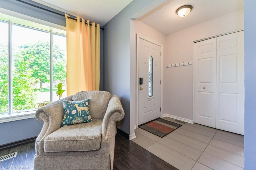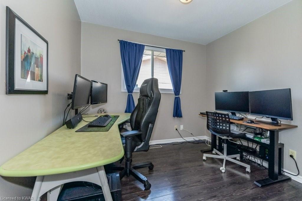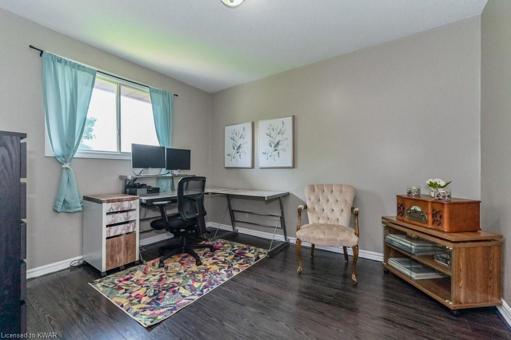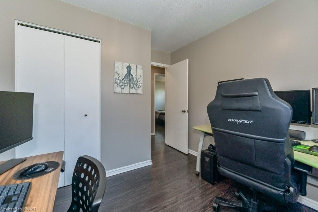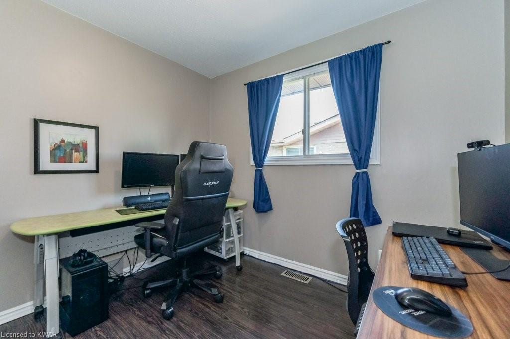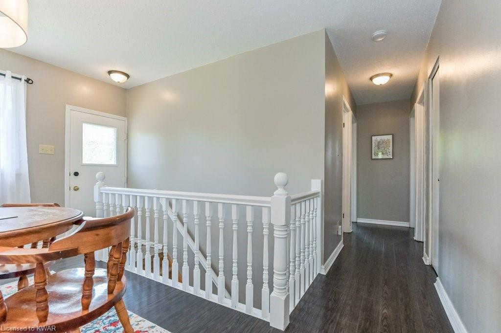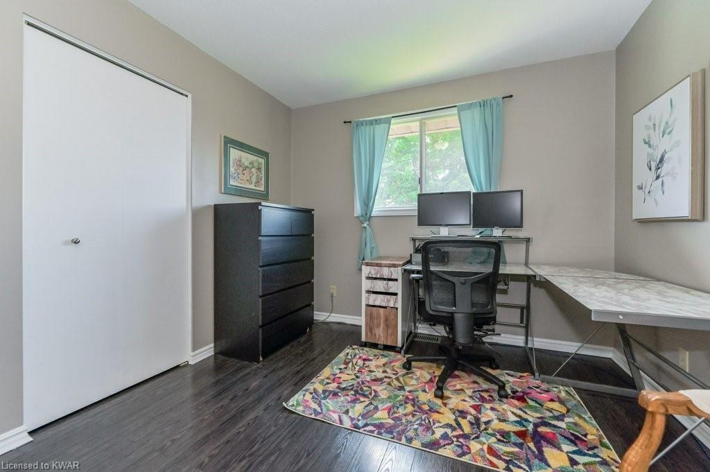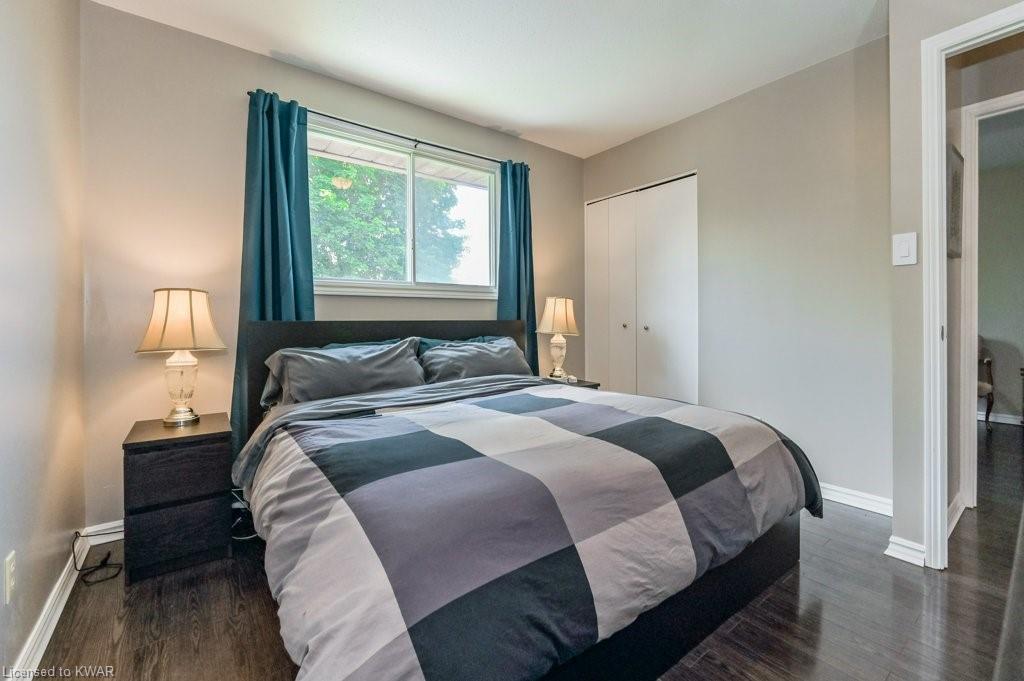 Check everything off your list! This adorable walkout bungalow is located on a friendly tree lined street steps from Milwood Park and close to the many amenities of Kitchener west! Step inside the bright foyer, open to a large living room with great views of the mature streetscape. The main floor is entirely carpet free, and features a kitchen with stainless steel appliances, open to a spacious dining room. Down the hall are three large bedrooms, two which are currently used as a work from home space. The main floor bathroom features ceramic floors, a corner shower and vanity with granite counters. The lower level walkout level features a large recreation room, with walkout to a deck and fully fenced private yard with garden shed and firepit. Completing the lower level is an exercise room, laundry room, three piece bathroom, and tons of storage space. Updated furnace and A/C. Close to shopping, restaurants, the 401 and Conestoga College. Parking for 3 cars! The perfect opportunity to climb the property ladder with a spacious home in a quiet neighbourhood!
