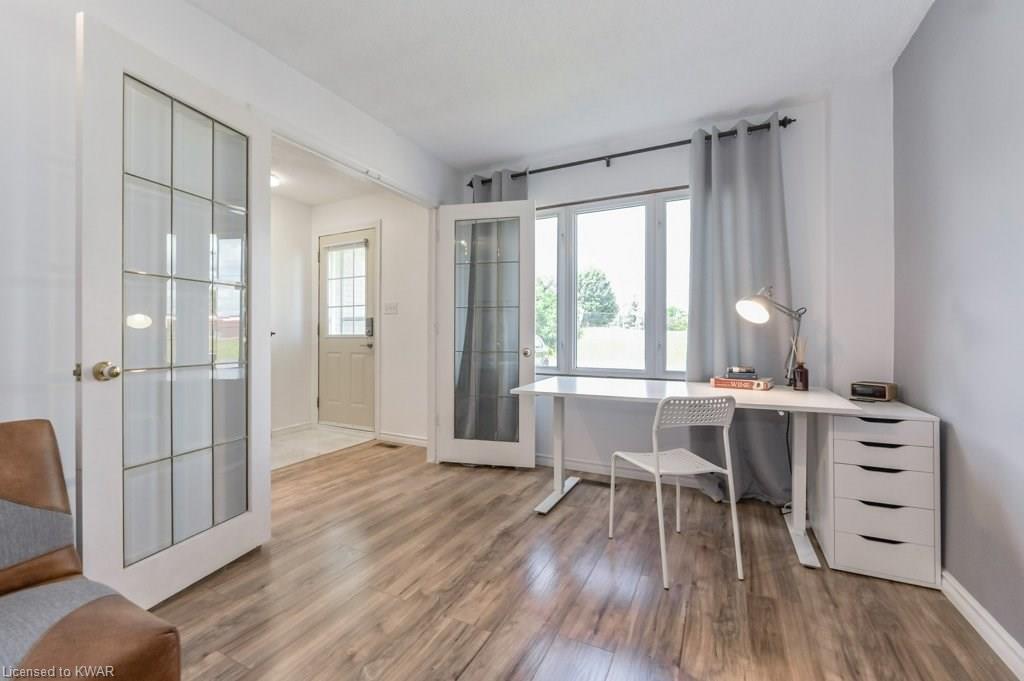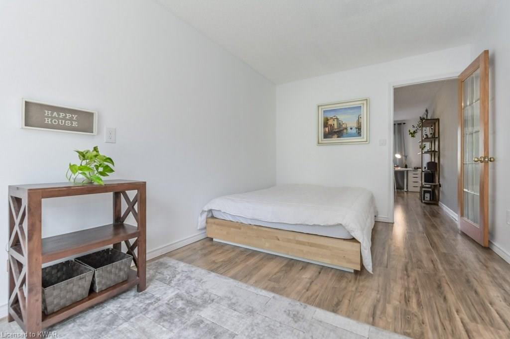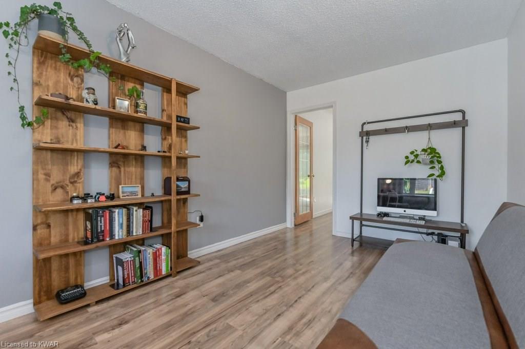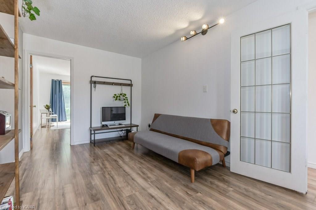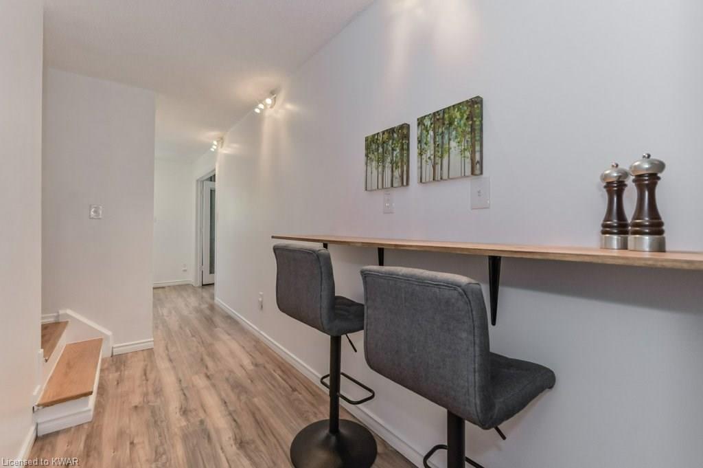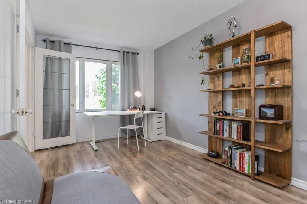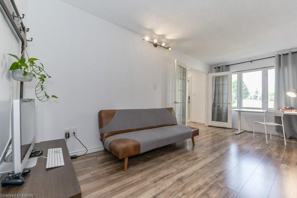 Climb the property ladder! This affordable and spacious three bedroom townhouse (with potential fourth bedroom on the main floor) is move in ready and located near many amenities and the Universities! Step inside the foyer, with french doors to a large living room with warm wide plank flooring and large bright windows. Also on this level is a spacious den (currently used as a bedroom), with sliders to a private patio with lovely views of mature trees. A four piece bathroom is just down the hall, and has been updated with tiled shower and new vanity. The eat in kitchen has plenty of cabinetry, and a built in breakfast bar for convenience. Upstairs are three spacious bedrooms, all with hardwood floors. The upper level bathroom has been renovated, and includes a brand new tub with tiled shower, and vanity with quartz counters. BONUS: this townhouse complex also has an inground swimming pool, perfect for hot days. Two parking spaces included! A great opportunity to live or invest in an updated home close to amenities!