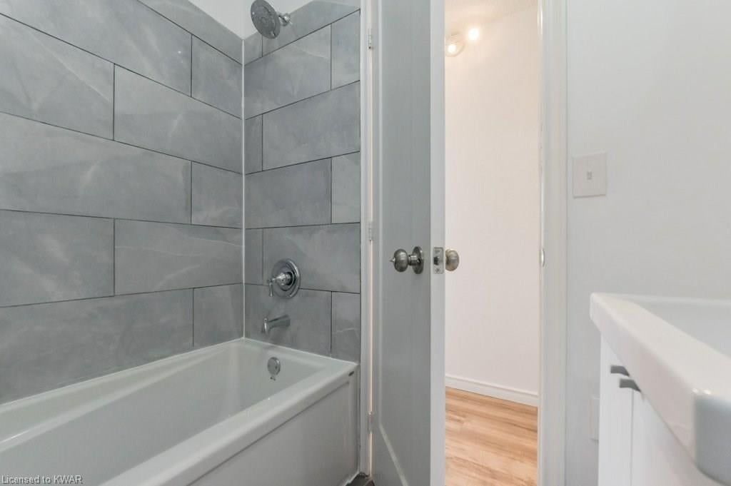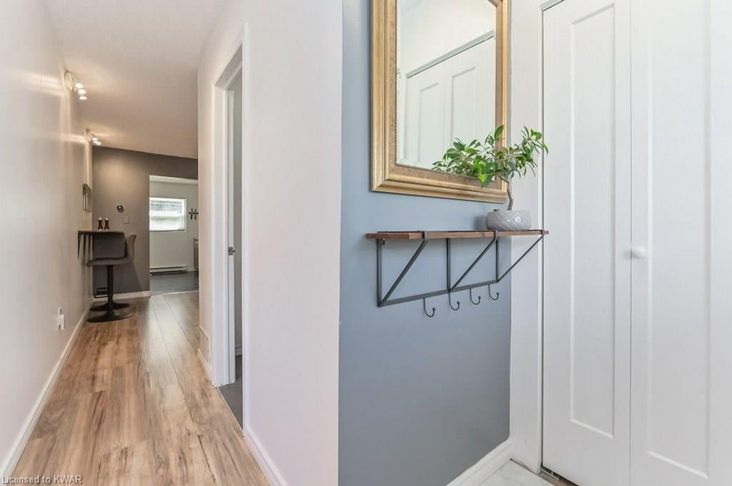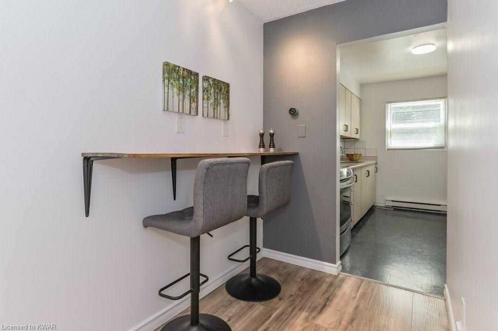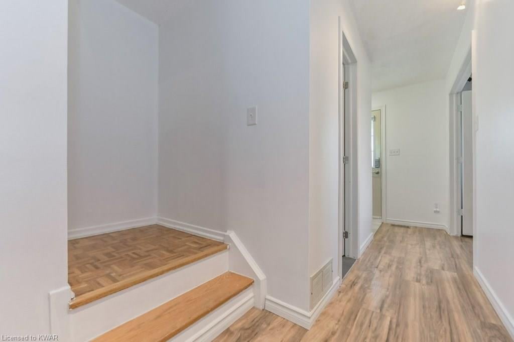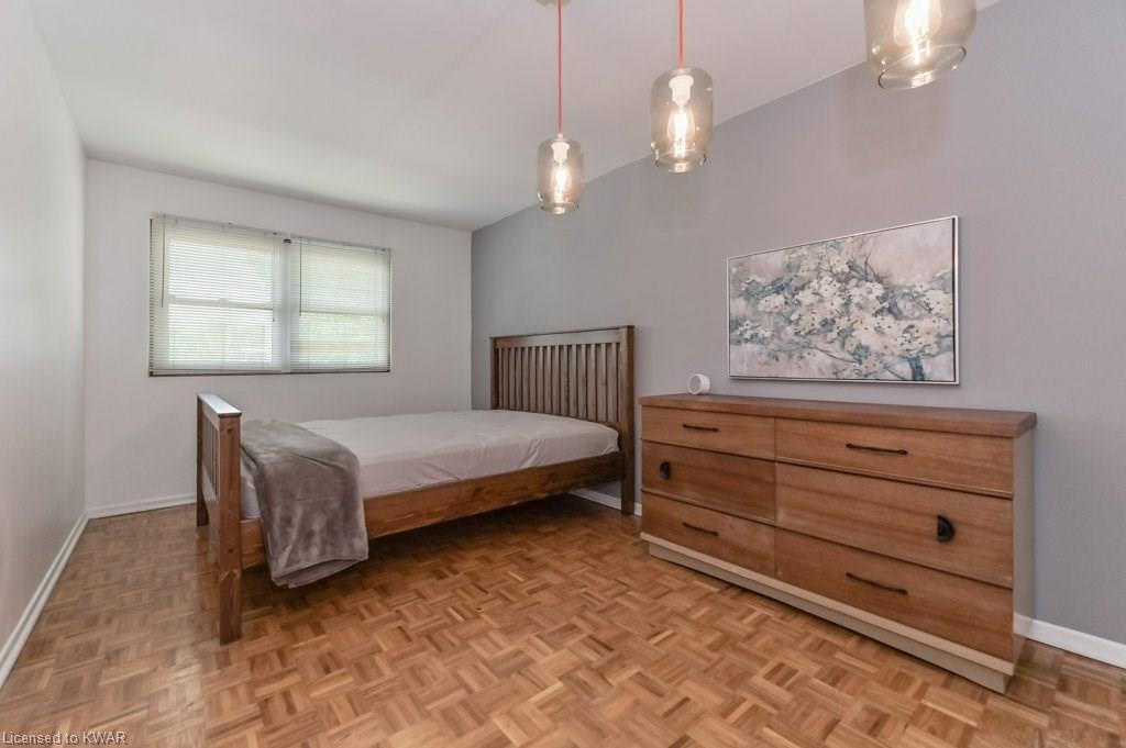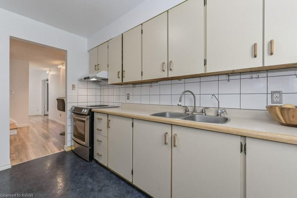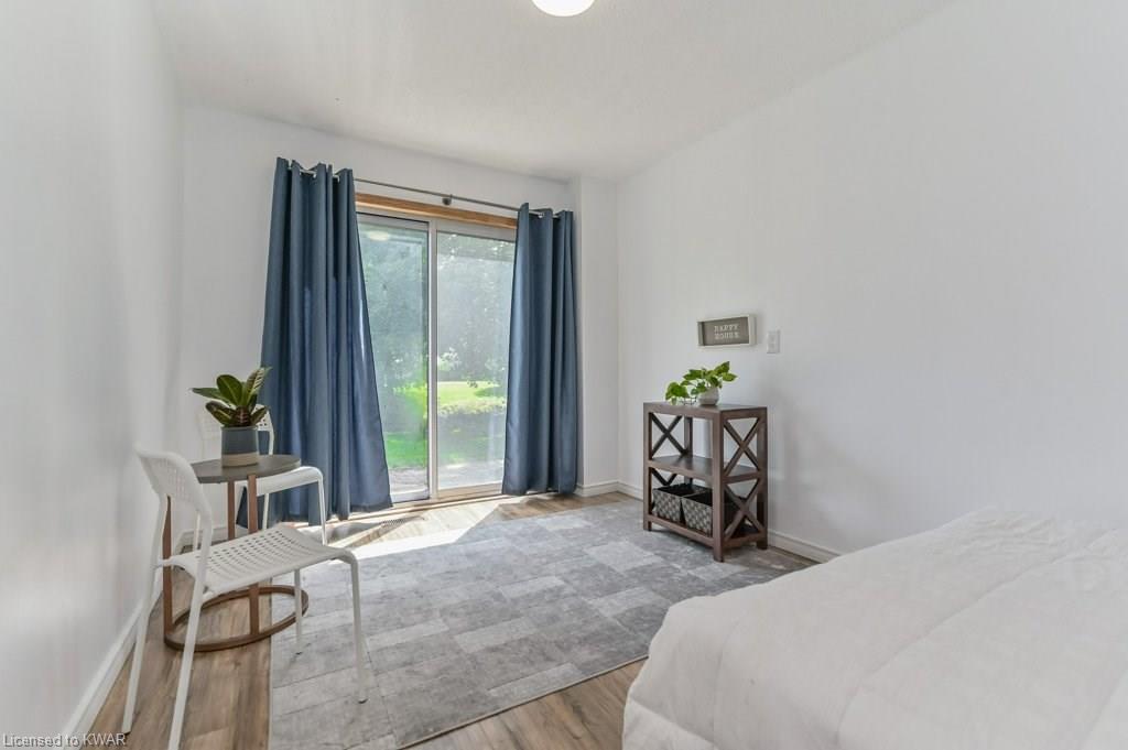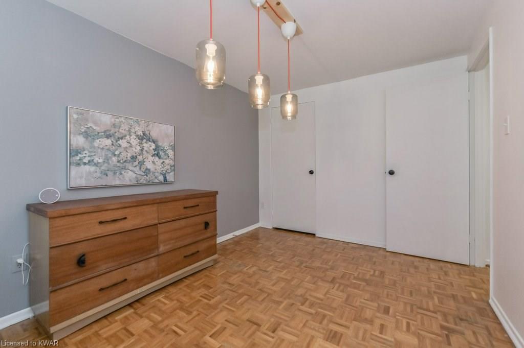 Climb the property ladder! This affordable and spacious three bedroom townhouse (with potential fourth bedroom on the main floor) is move in ready and located near many amenities and the Universities! Step inside the foyer, with french doors to a large living room with warm wide plank flooring and large bright windows. Also on this level is a spacious den (currently used as a bedroom), with sliders to a private patio with lovely views of mature trees. A four piece bathroom is just down the hall, and has been updated with tiled shower and new vanity. The eat in kitchen has plenty of cabinetry, and a built in breakfast bar for convenience. Upstairs are three spacious bedrooms, all with hardwood floors. The upper level bathroom has been renovated, and includes a brand new tub with tiled shower, and vanity with quartz counters. BONUS: this townhouse complex also has an inground swimming pool, perfect for hot days. Two parking spaces included! A great opportunity to live or invest in an updated home close to amenities!