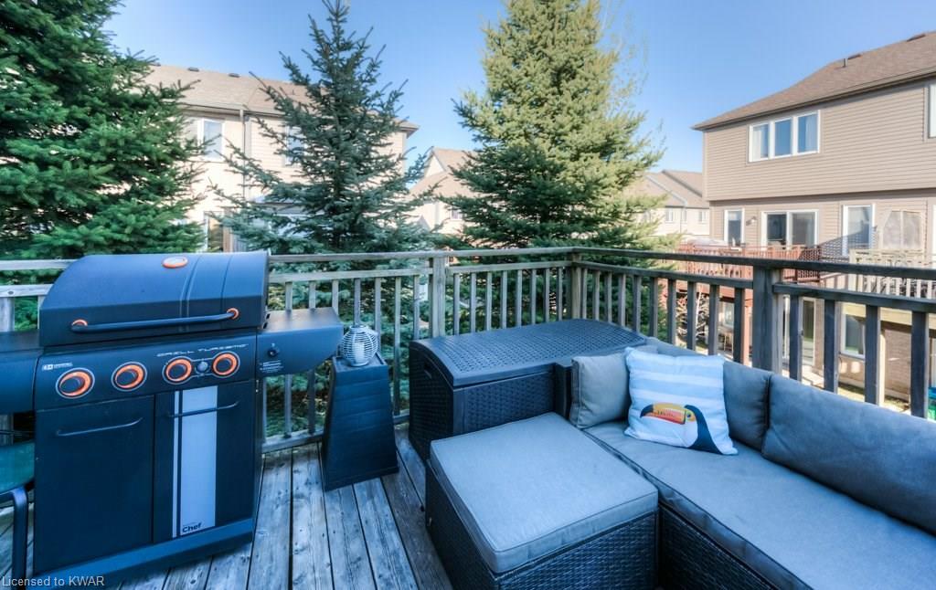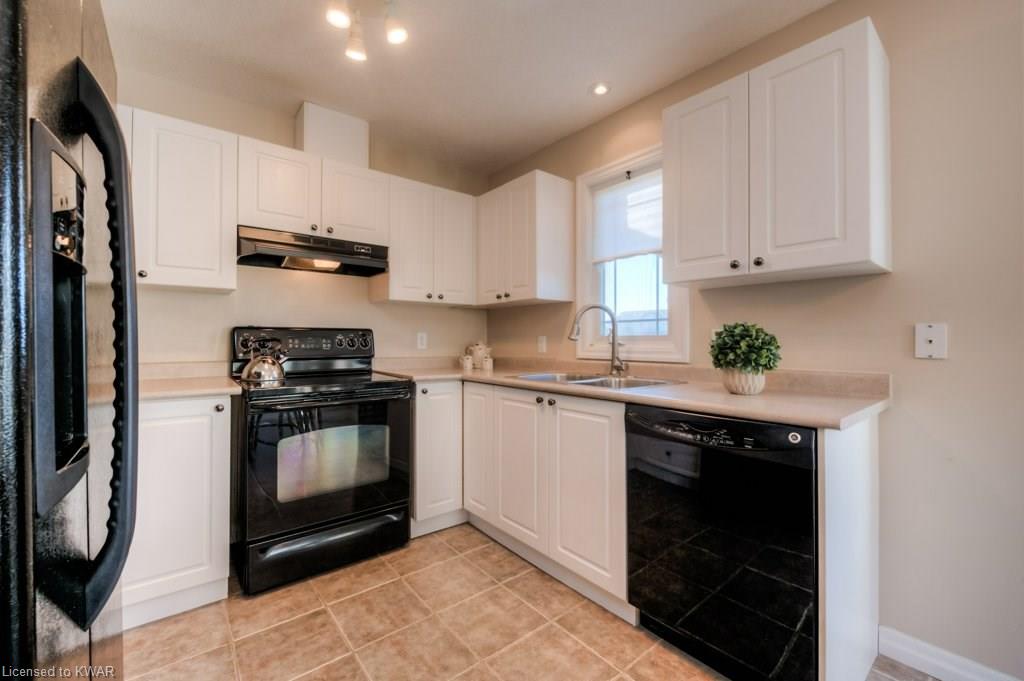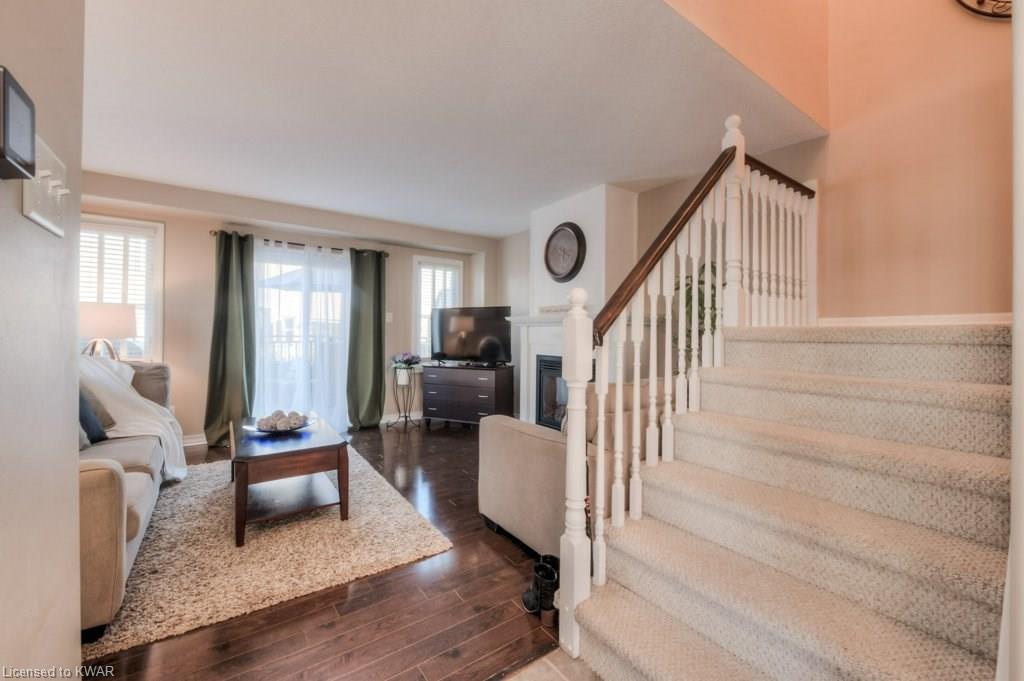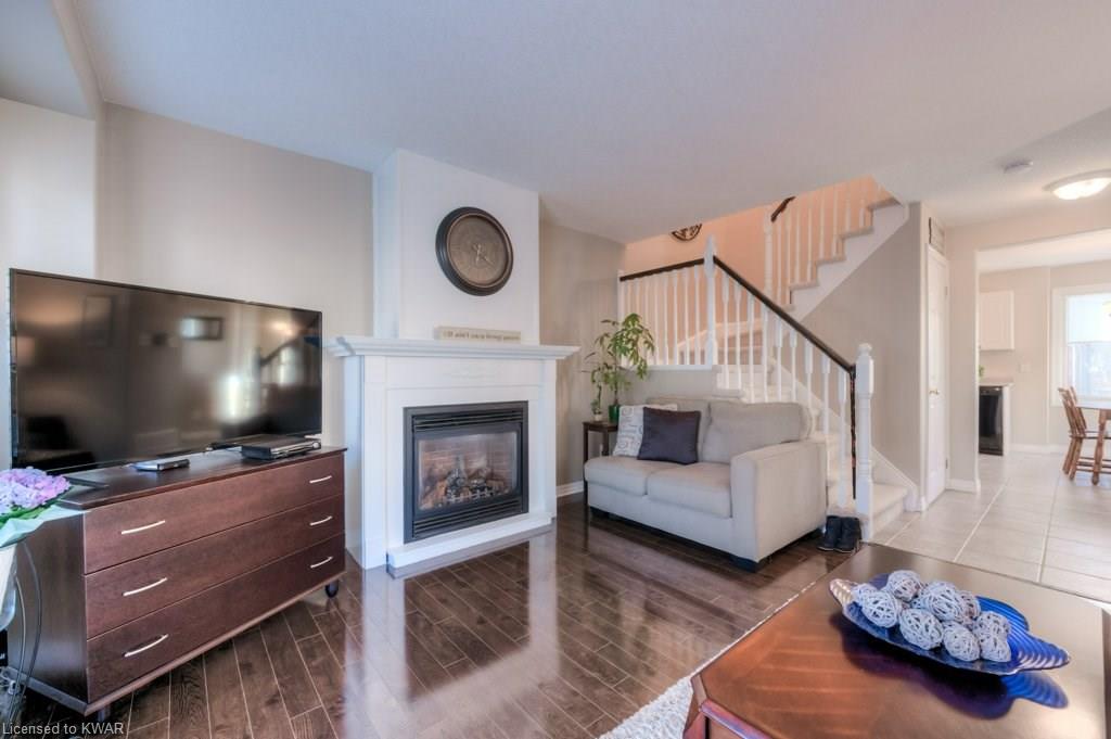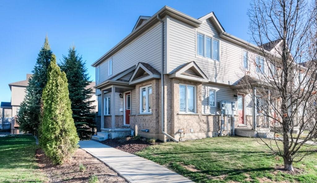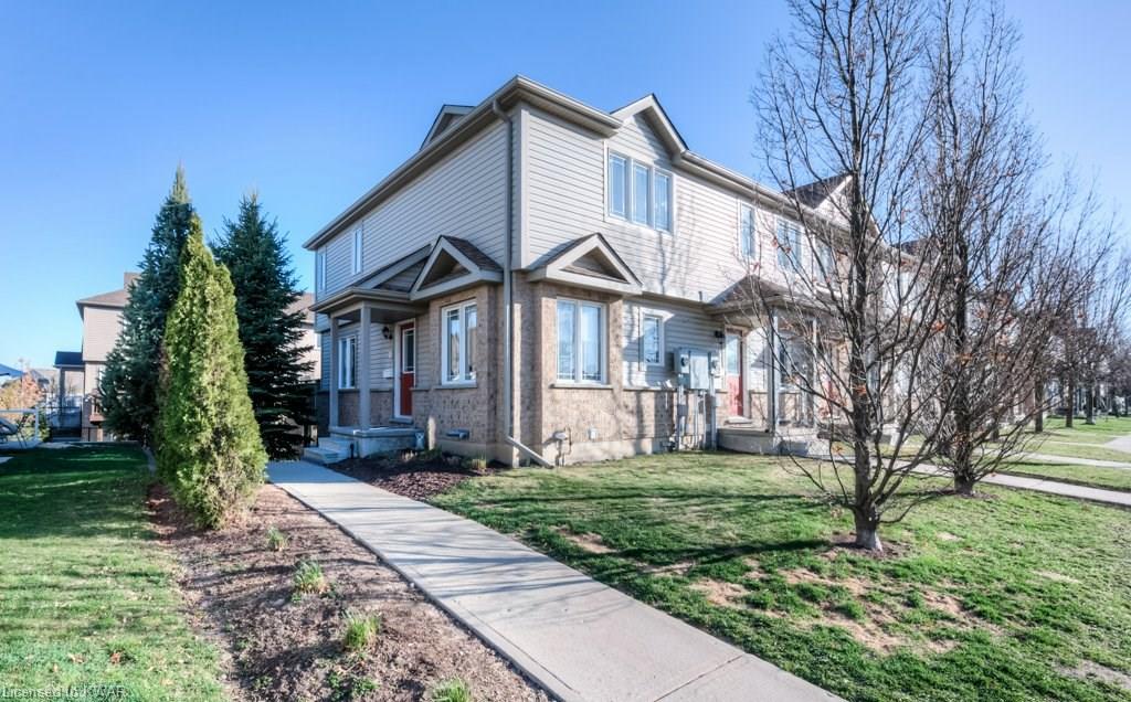 Check everything off your list! This RARE END UNIT WALKOUT townhome is located in an exclusive community of townhouses at 535 Windflower Crescent, in close proximity to the many amenities of West Kitchener! The modern kitchen and dining room feature an open concept design with ceramic floors, timeless white shaker cabinetry, and plenty of prep space for cooking! The living room is bright and airy, with big windows, warm hardwood floors, a cozy gas fireplace and sliders to a spacious private deck. Upstairs are two large bedrooms, including an amazing bright master with windows throughout, hardwood floors and 2 closets (walk-in closet+bonus!). A convenient four piece bathroom is just down the hall. The lower walkout level is fully finished, with brand new carpet and additional four piece bathroom with full bathtub and shower. A second patio is accessible from the lower level walkout, and is a nice place to enjoy a quiet coffee. The laundry room is an efficient use of space, with lots of additional room for storage. The roof was replaced in 2019. Close to amenities, transit and the 401. You are going to LOVE all the windows in this beautiful home in a fantastic location!