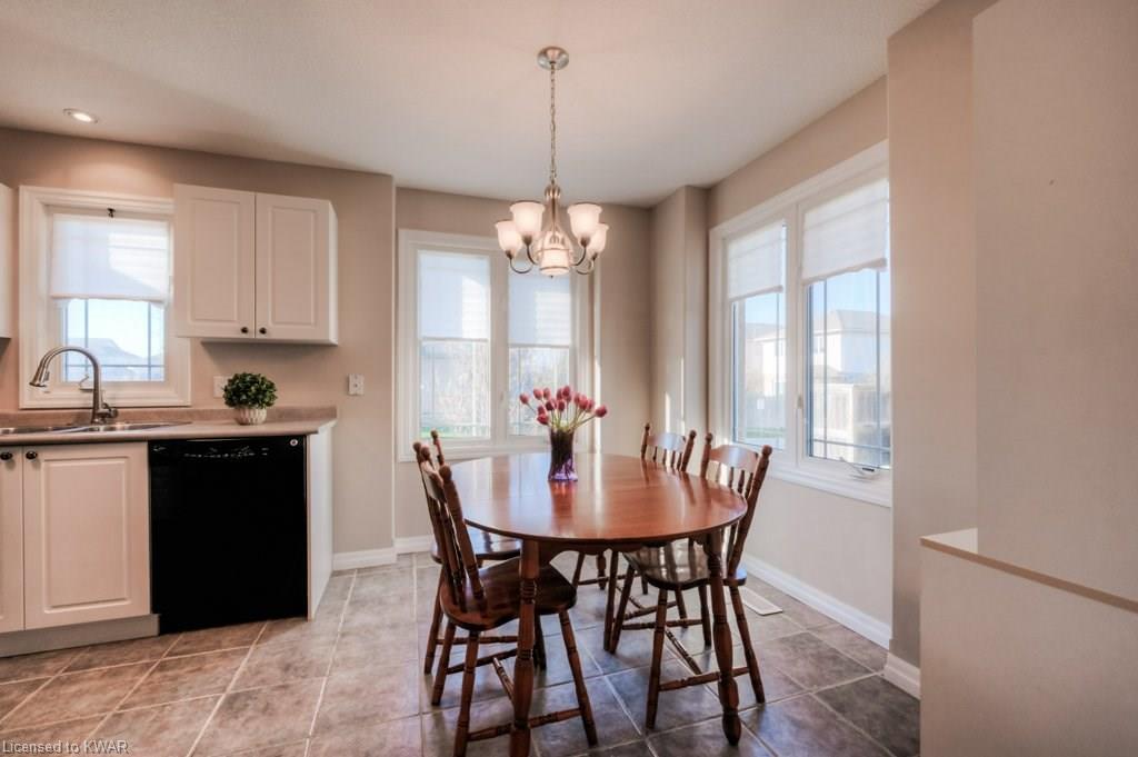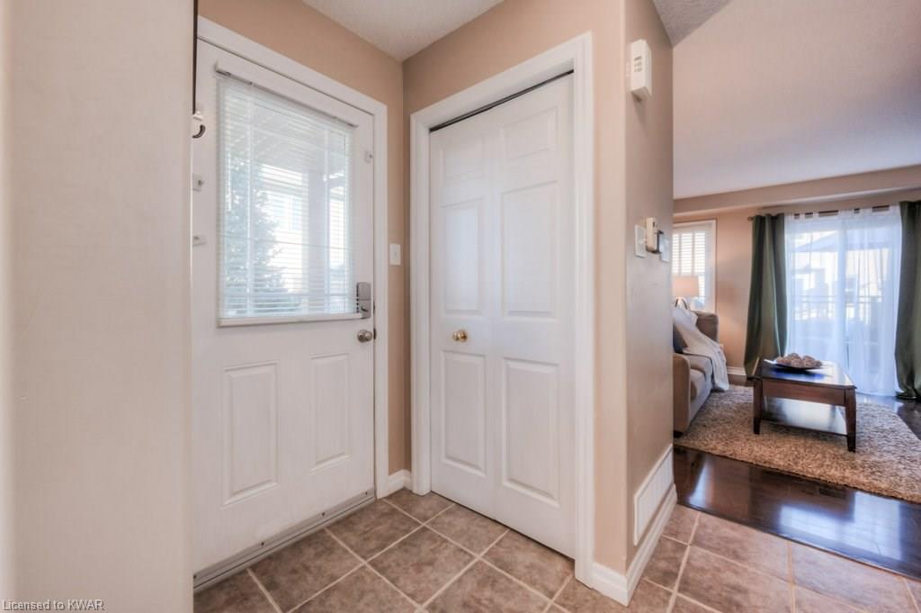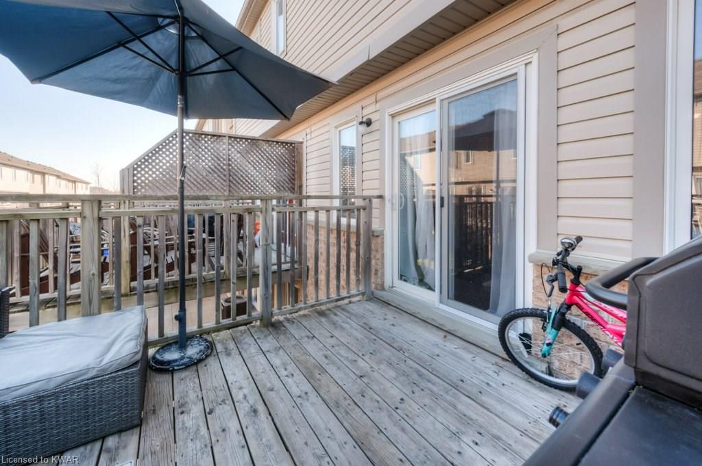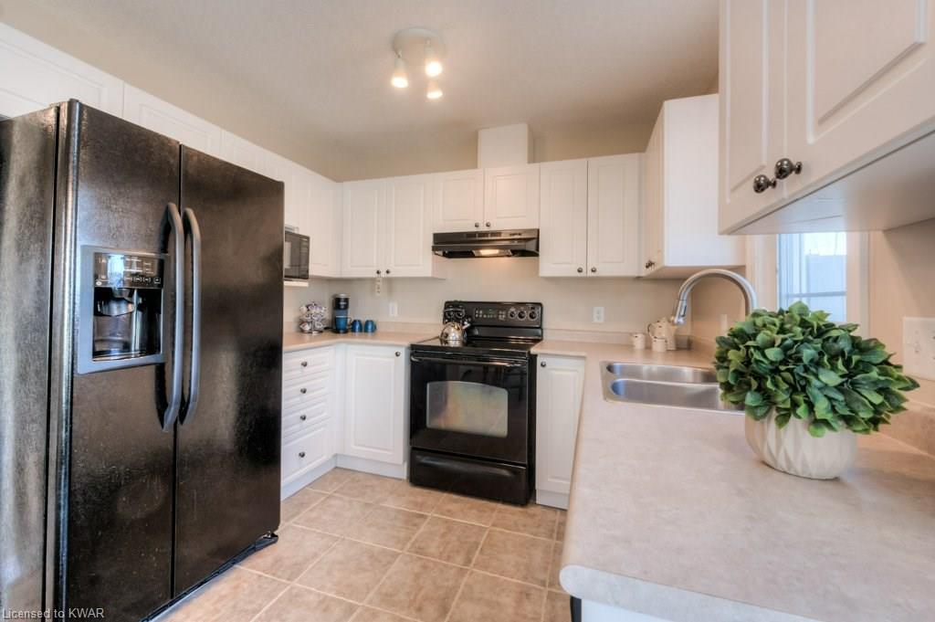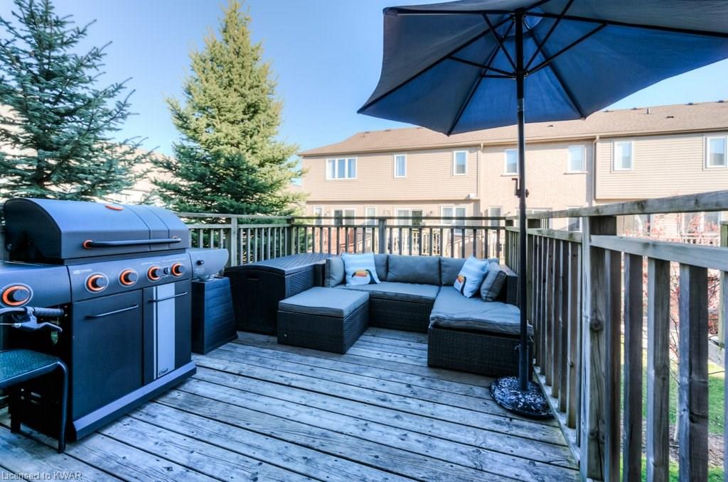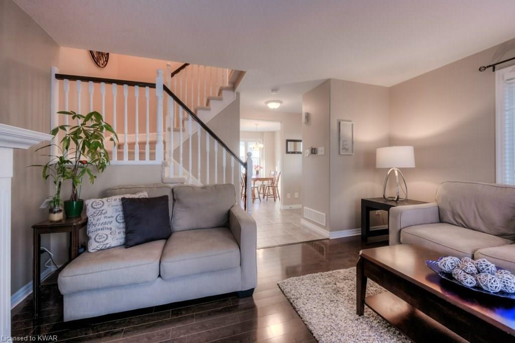 Check everything off your list! This RARE END UNIT WALKOUT townhome is located in an exclusive community of townhouses at 535 Windflower Crescent, in close proximity to the many amenities of West Kitchener! The modern kitchen and dining room feature an open concept design with ceramic floors, timeless white shaker cabinetry, and plenty of prep space for cooking! The living room is bright and airy, with big windows, warm hardwood floors, a cozy gas fireplace and sliders to a spacious private deck. Upstairs are two large bedrooms, including an amazing bright master with windows throughout, hardwood floors and 2 closets (walk-in closet+bonus!). A convenient four piece bathroom is just down the hall. The lower walkout level is fully finished, with brand new carpet and additional four piece bathroom with full bathtub and shower. A second patio is accessible from the lower level walkout, and is a nice place to enjoy a quiet coffee. The laundry room is an efficient use of space, with lots of additional room for storage. The roof was replaced in 2019. Close to amenities, transit and the 401. You are going to LOVE all the windows in this beautiful home in a fantastic location!