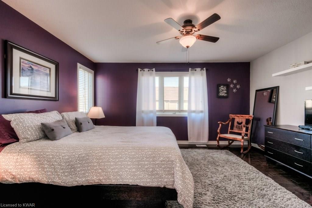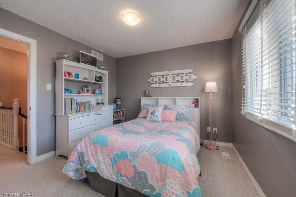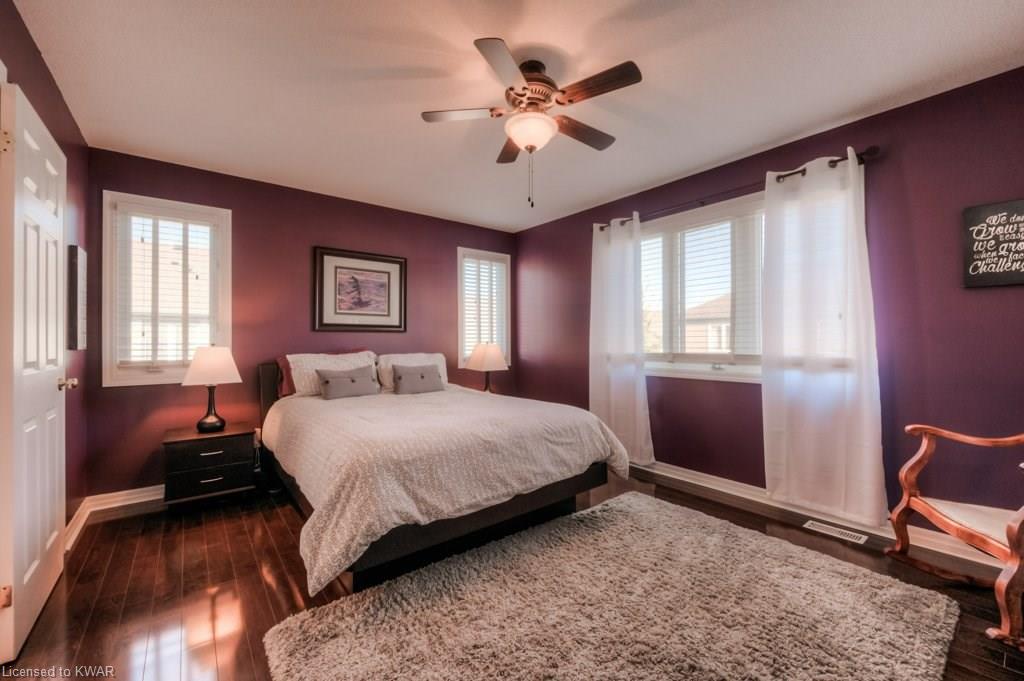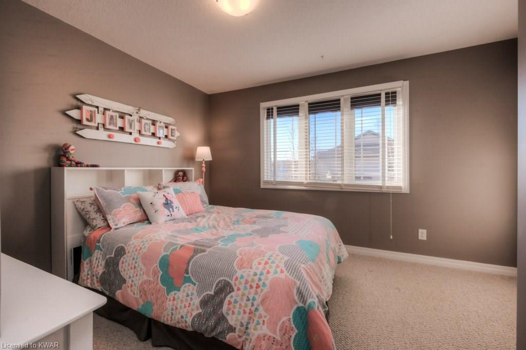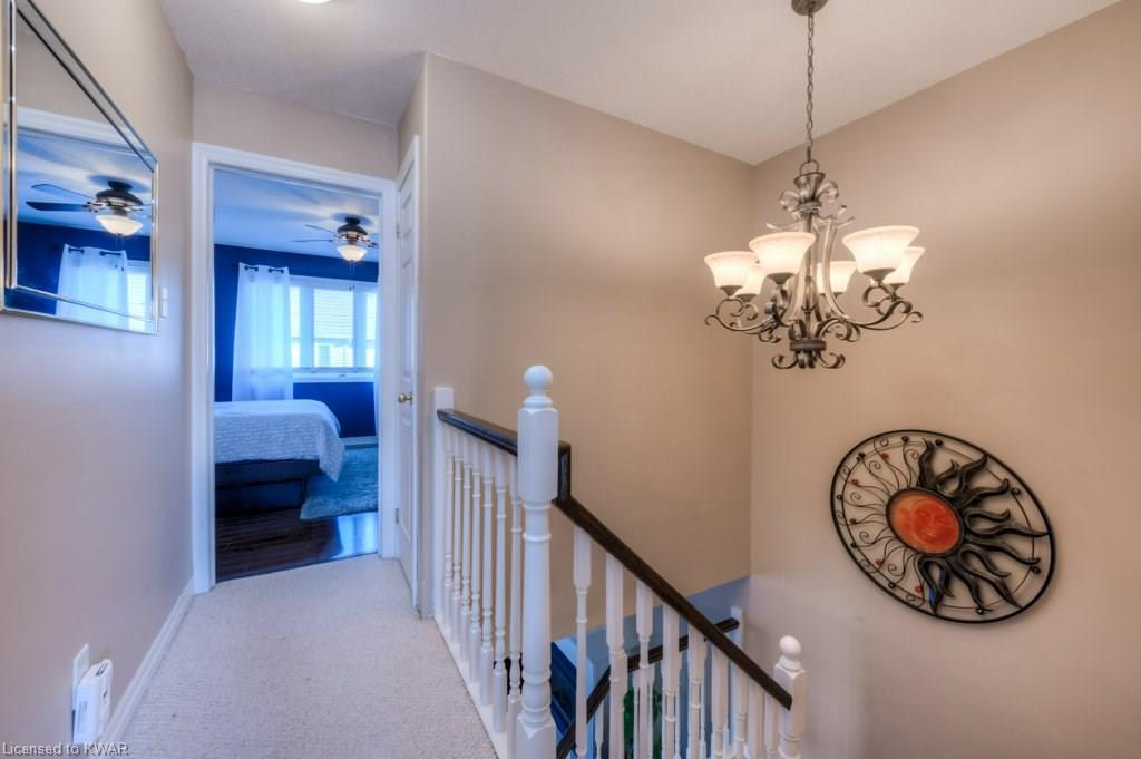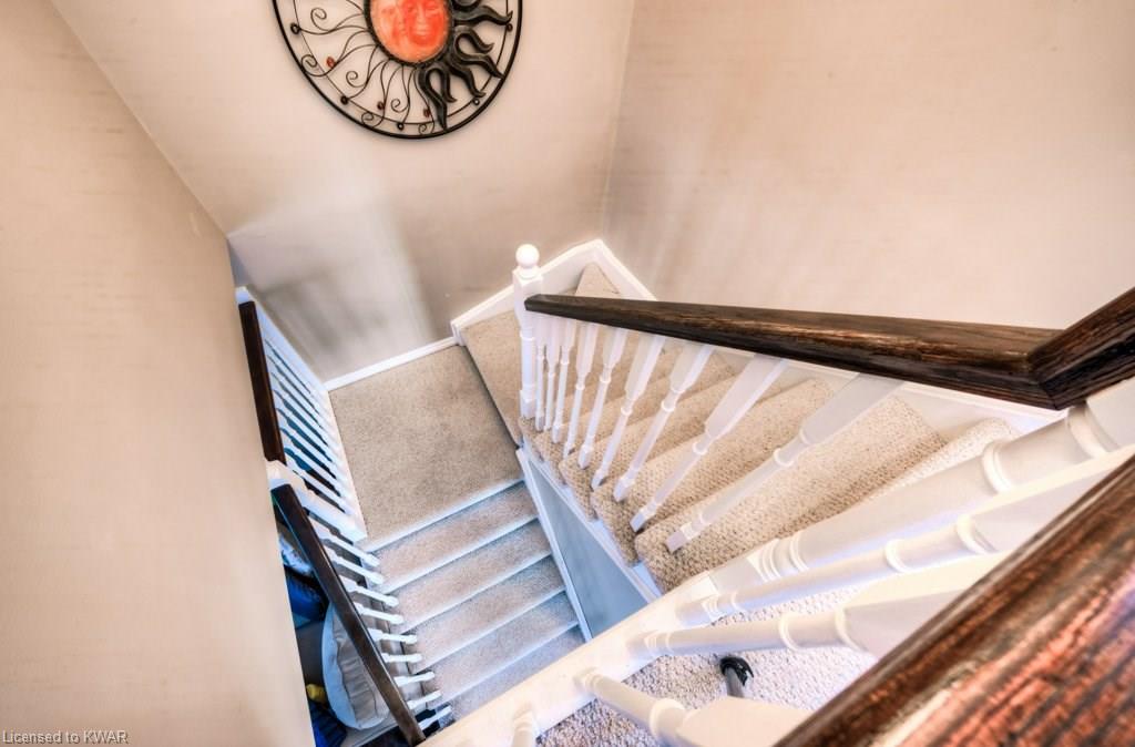 Check everything off your list! This RARE END UNIT WALKOUT townhome is located in an exclusive community of townhouses at 535 Windflower Crescent, in close proximity to the many amenities of West Kitchener! The modern kitchen and dining room feature an open concept design with ceramic floors, timeless white shaker cabinetry, and plenty of prep space for cooking! The living room is bright and airy, with big windows, warm hardwood floors, a cozy gas fireplace and sliders to a spacious private deck. Upstairs are two large bedrooms, including an amazing bright master with windows throughout, hardwood floors and 2 closets (walk-in closet+bonus!). A convenient four piece bathroom is just down the hall. The lower walkout level is fully finished, with brand new carpet and additional four piece bathroom with full bathtub and shower. A second patio is accessible from the lower level walkout, and is a nice place to enjoy a quiet coffee. The laundry room is an efficient use of space, with lots of additional room for storage. The roof was replaced in 2019. Close to amenities, transit and the 401. You are going to LOVE all the windows in this beautiful home in a fantastic location!