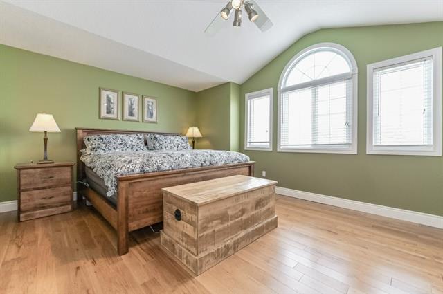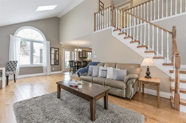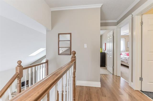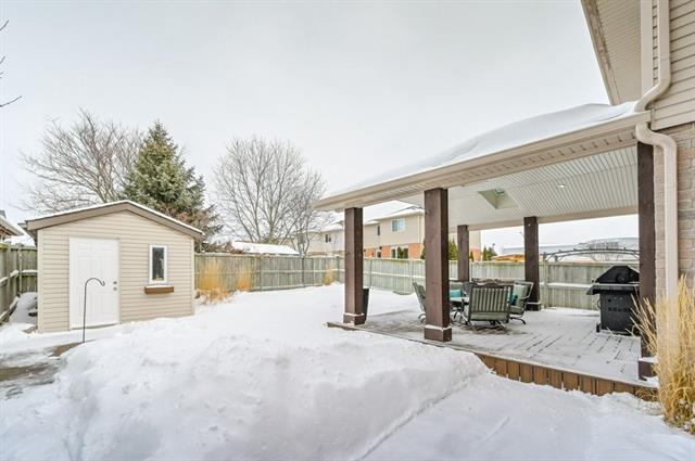 Check everything off your list! This Eastbridge beauty has been meticulously updated and lovingly cared for! Step inside the tiled foyer with custom built-in maple storage, open to a bright living room with vaulted ceilings, skylights, beautiful solid hickory staircase, solid hickory floors and cozy gas fireplace! The kitchen has been updated with solid maple cabinetry (including the cabinet boxes), granite counters, stainless steel appliances and central vac with floor sweep. The adjacent formal dining room is perfect for entertaining with maple built-ins offering plenty of additional storage! A handy mudroom just off the garage and a powder room complete the main floor. Upstairs is a large master bedroom with vaulted ceiling, warm hardwood floors, and wall-to-wall custom maple wardrobes. The updated ensuite has granite counters, corner shower, & jetted tub. Two additional bedrooms with built-in closet organizers are down the hall as is a generous bathroom with double sinks. The lower level is fully finished with a spacious bedroom (insulated for sound) with large window , family room with built-in Murphy bed & shelving, a 3 pc bath, and plenty of storage. The private backyard is fully fenced, with a poured concrete path leading to the garden shed. The large composite deck is the PERFECT spot for relaxing, with a covered truss roof with 2 skylights and LED potlights! A very rare opportunity to be steps from excellent schools in one of Waterloo’s best neighbourhoods!
