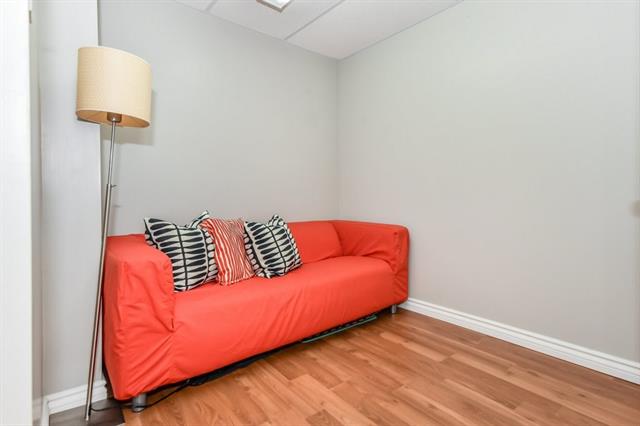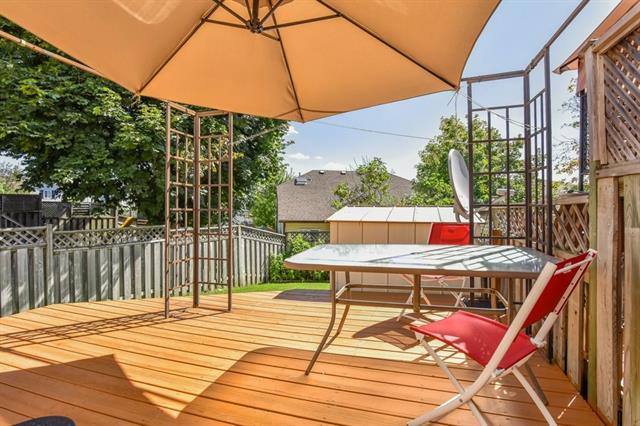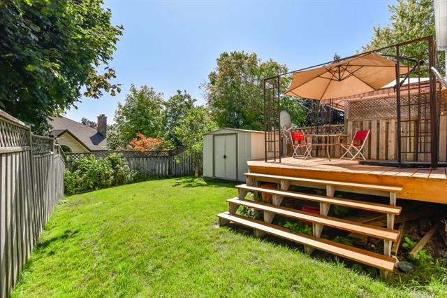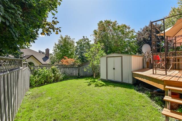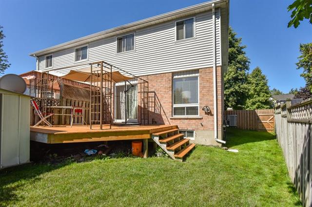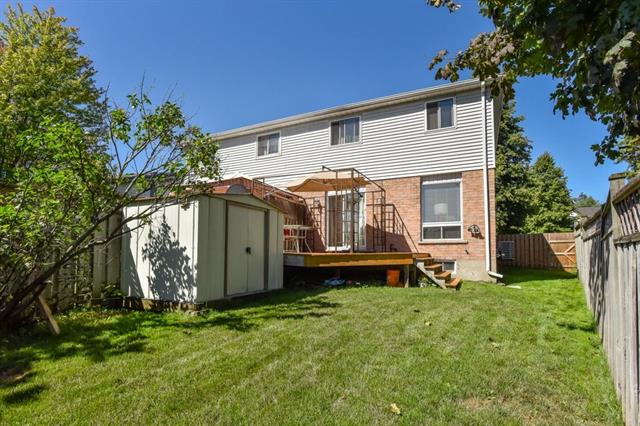 This adorable three bedroom, two bath, semi-detached home is located on a family friendly tree lined street close to schools, parks, and 401 access! The main level is carpet free, with warm textured floors and plenty of light. The kitchen is open to a family room with a huge window as well as sliders to a private fully fenced yard with spacious deck, and garden shed! Upstairs are three large bedrooms, and an updated four piece bathroom with new tub and faucets. The basement is also carpet free and fully finished with an additional bathroom. Updates include new high efficiency furnace & air conditioning, smart thermostat, & water softener. The driveway has parking for two cars as well as a spacious side yard! An excellent opportunity in a great location!