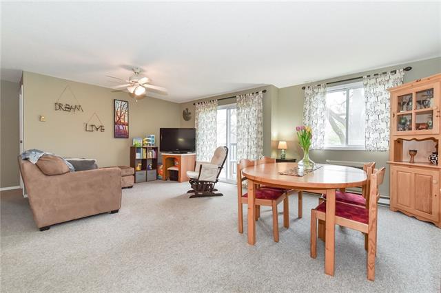 Check everything off your list!! Climb the property ladder with this RARE and affordable THREE bedroom condominium in East Waterloo! Excellent open concept floorplan with spacious living room is open to dining room with wonderful bright window and sliders to balcony! The kitchen has a built in breakfast bar with trendy counters and plenty of storage. Three spacious bedrooms including a master with views of trees and nature. The four piece bathroom has been updated with crisp white subway tiles and vanity with granite counters. The unit includes a large walk-in storage closet, which can also be converted to a future ensuite laundry! The balcony is private and looks out onto trees. The complex walks out onto a wonderful park, complete with playground, tennis and basketball courts. Condo amenities include a convenient laundry and exercise room! Close proximity to shopping/eating and steps from transportation, in a desired school district. A spacious unit in a fantastic location!