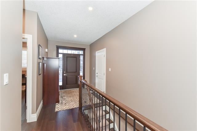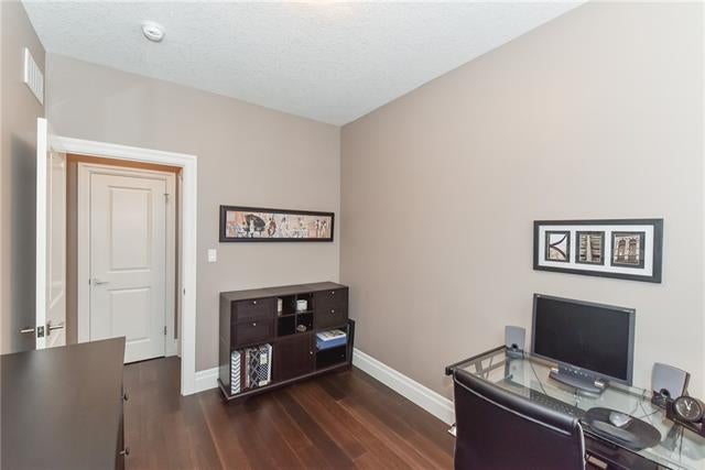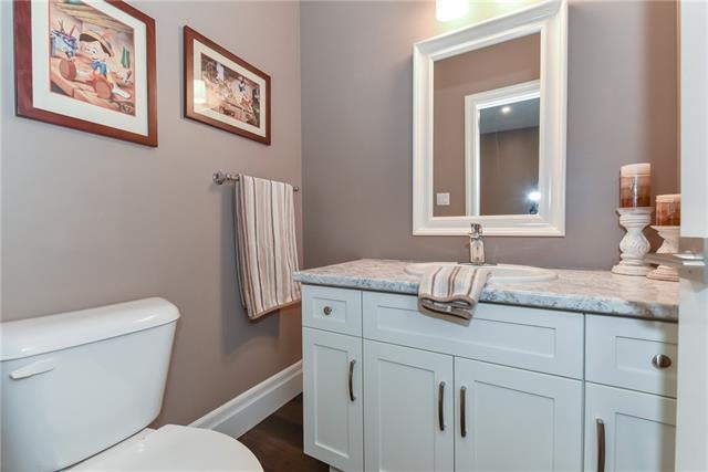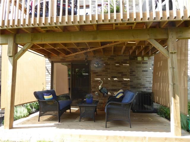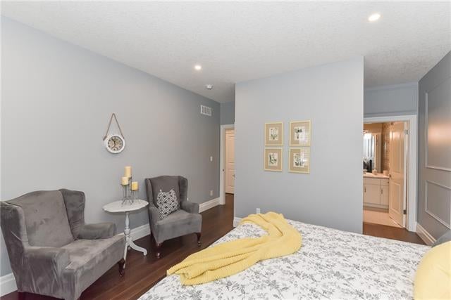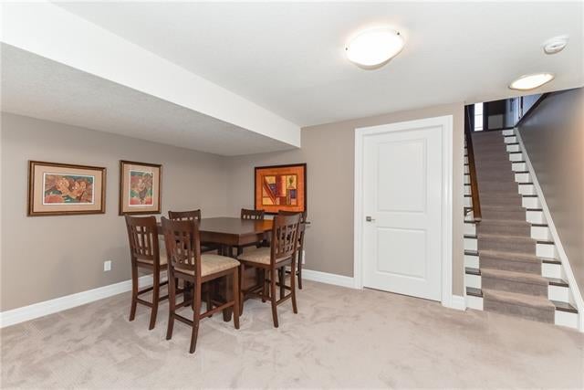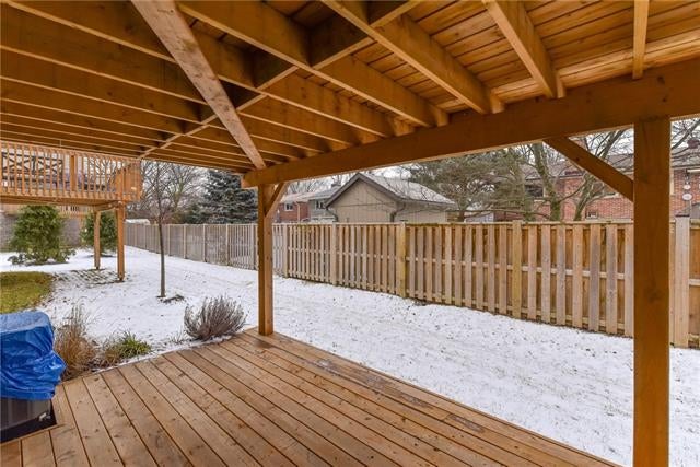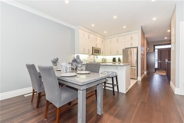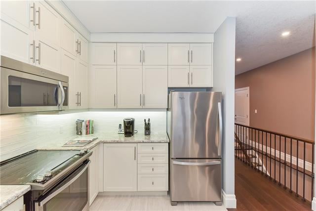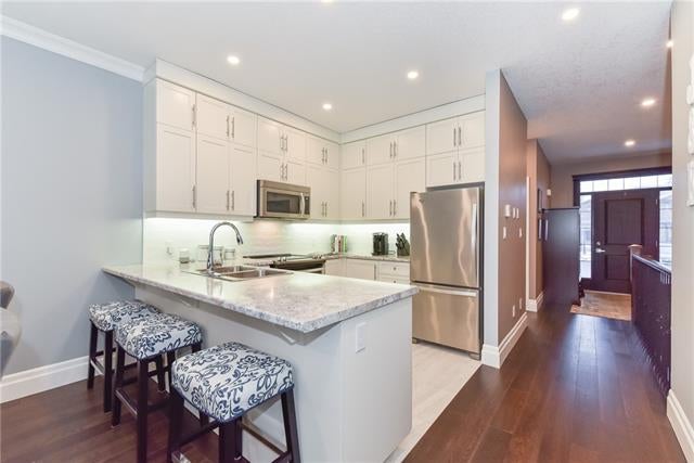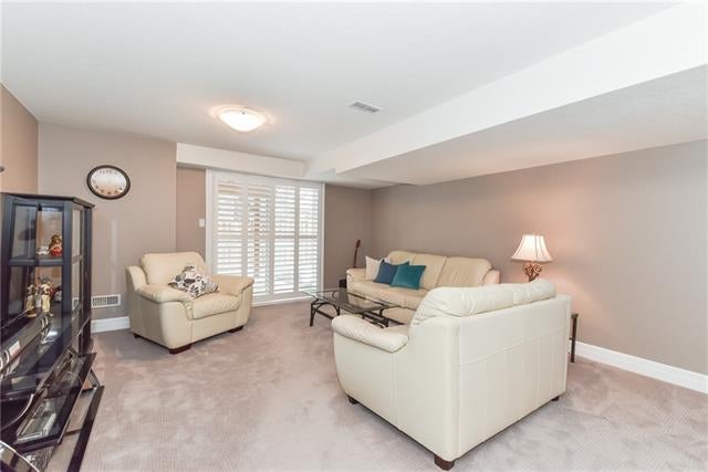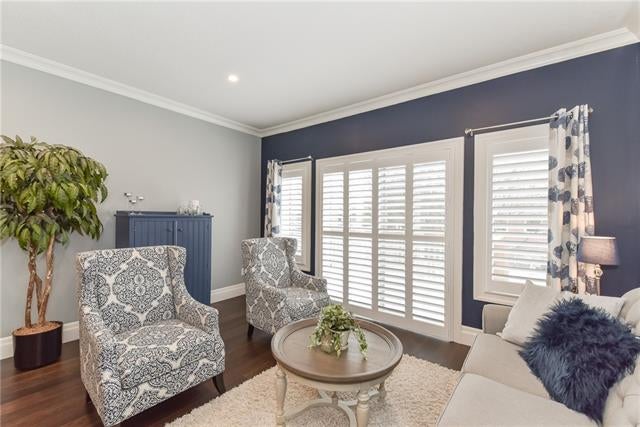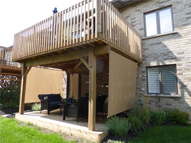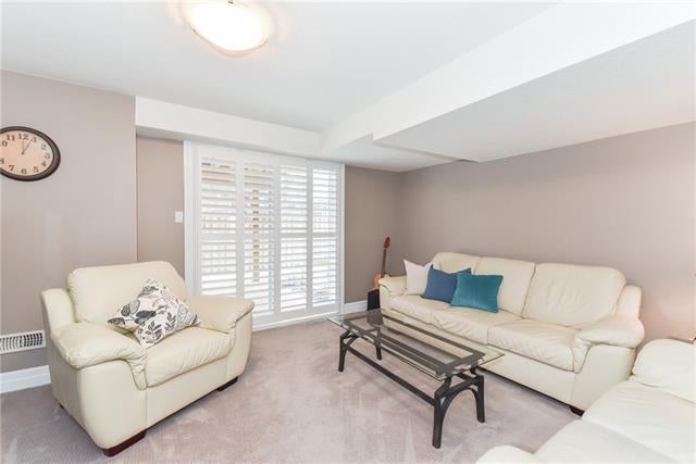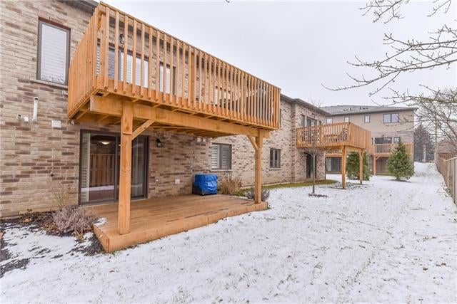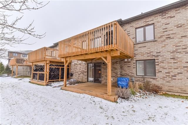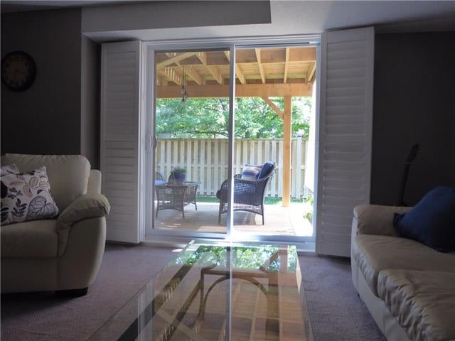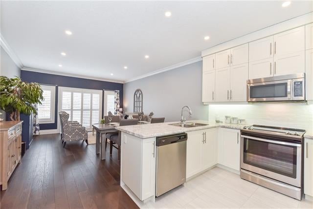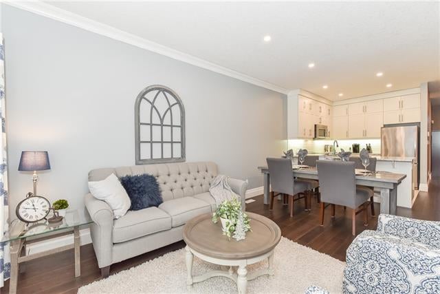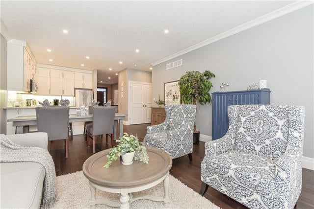 RARE OFFERING! Meticulously maintained bungalow townhome with almost 2000 square feet of finished living space! Step inside the welcoming foyer with 9 foot ceilings on the main floor, and wide plank hardwood that stretches throughout. Upgraded shaker kitchen with extended height cabinetry, backsplash, undercabinet lighting, and an eat-up breakfast bar perfect for entertaining. Open concept living/dining area with crown moulding, California shutters, and sliders to a private 2-tiered deck with custom privacy blinds and beautiful landscaping. Convenient main floor living includes a bright and airy master with walk-in closet and ensuite featuring spacious glass shower with dual heads. Also on the main floor is an additional den/office, 2pc bath and a well placed laundry room with built-in cabinetry. The lower level walkout has been carefully finished and features a large bedroom, 4 piece bathroom, additional great room and plenty of storage. A turn-key home in a wonderful neighbourhood.