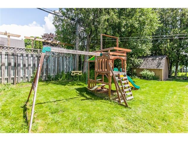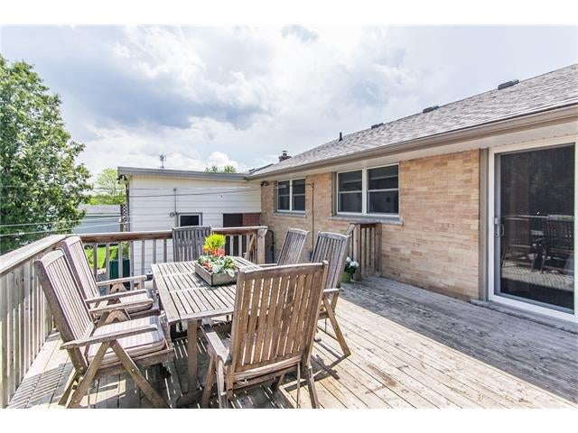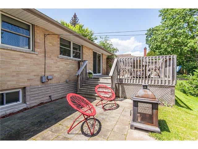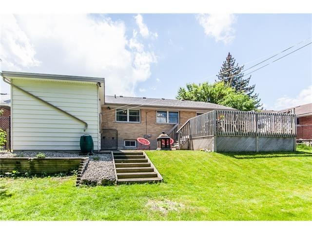 Adorable all brick bungalow on a wonderful tree lined street in popular Rockway! Beautiful bright living room with huge picture window and warm hardwood floors. Kitchen with eat up breakfast bar open to living room is perfect for entertaining (fridge, stove dishwasher included). Three nice sized bedrooms including the master with sliders to large deck and patio with gas BBQ hook up. Updated main floor 4 piece bath with frosted window, built-in medicine cabinet and trendy white wainscoting. Lower level is accessible from the main floor and also has a handy separate entrance for income or inlaw possibilities! Huge recreation room with corner fireplace, office (wired for surround sound), a 3 piece bath with shower and plenty of storage! New interior doors, 5 1/4" baseboards and contemporary colours throughout. Large backyard with shed and play structure included! Extra long carport with huge attached storage area with lots of room for bikes, lawnmower, snowblower etc. Updates include windows and patio door (2009), roof (2010), high efficiency furnace (2013) and carport (2014). Excellent location close to schools, amenities, transportation and the expressway! Be sure to click on the multimedia tour!