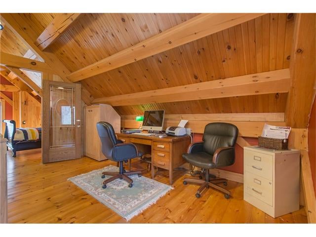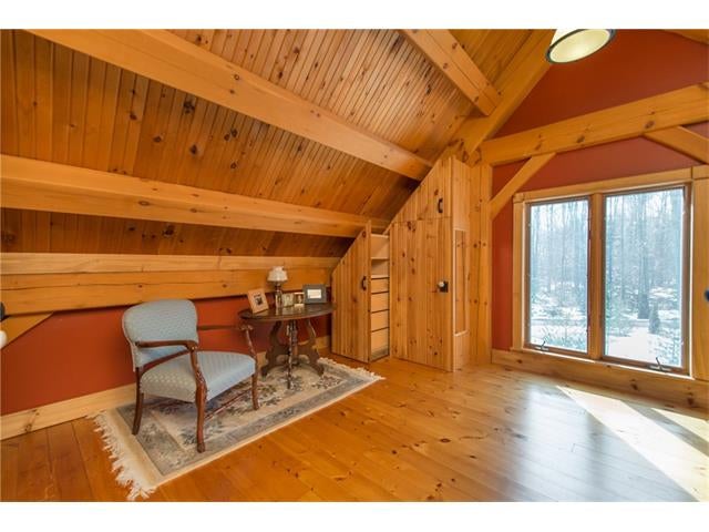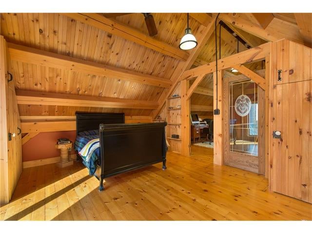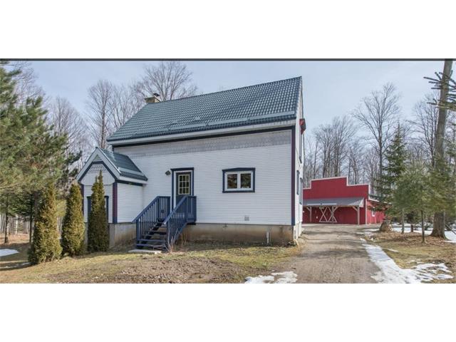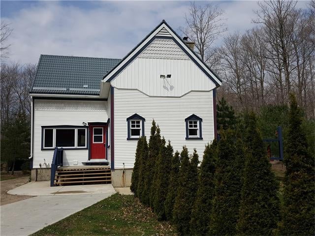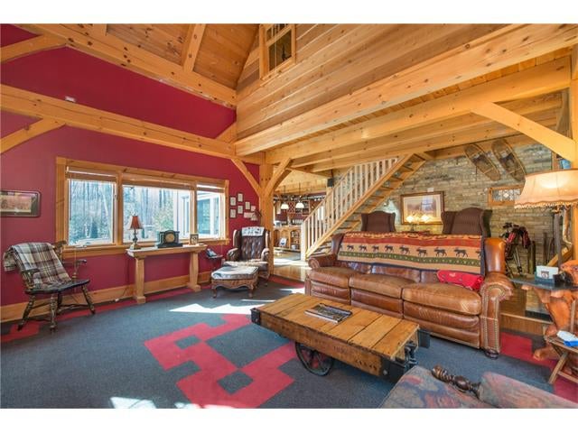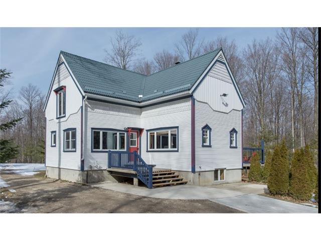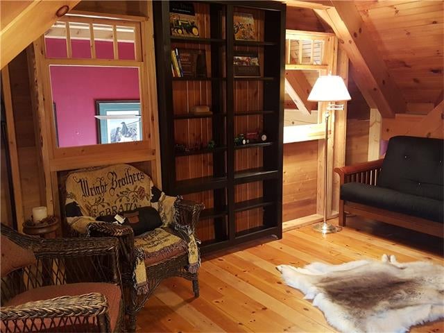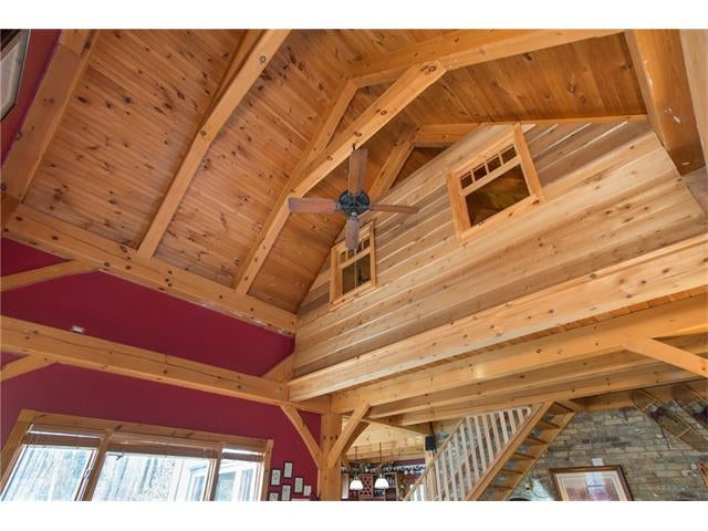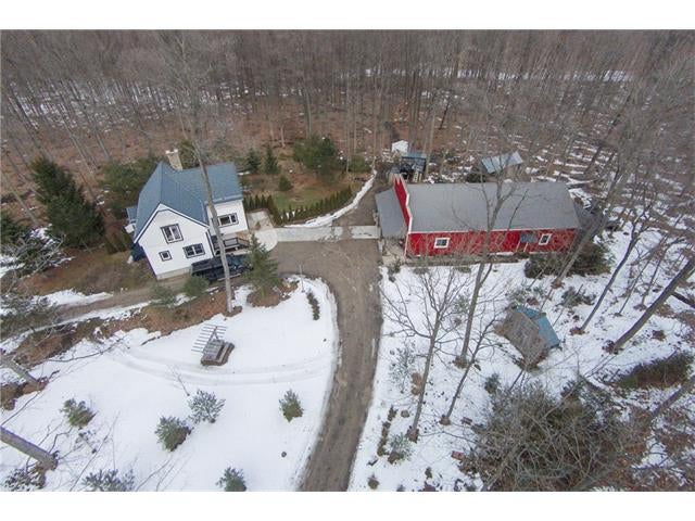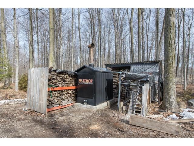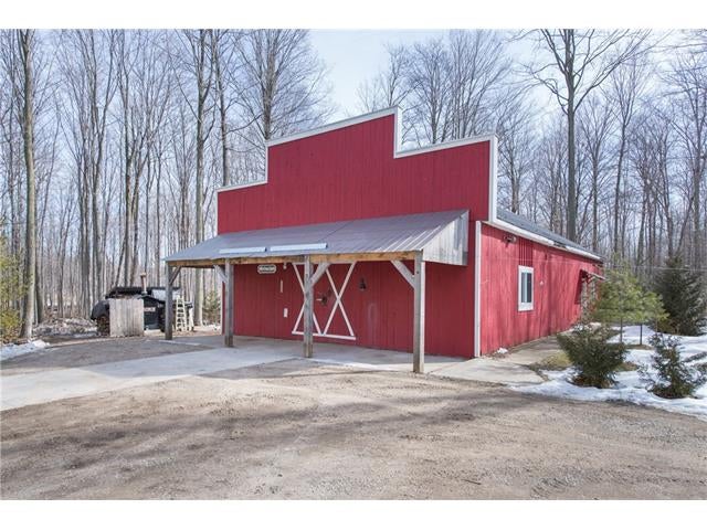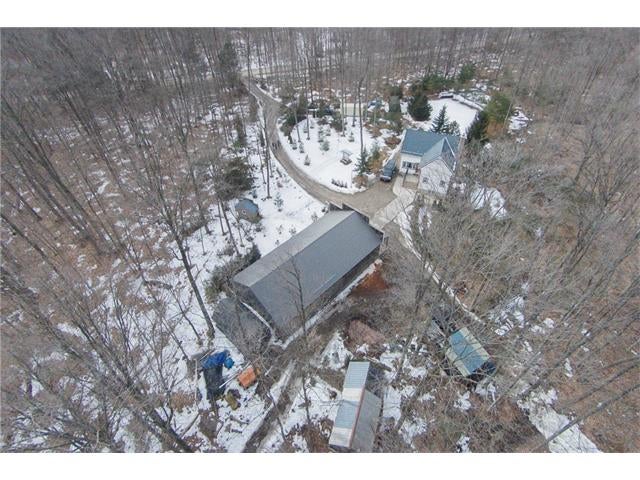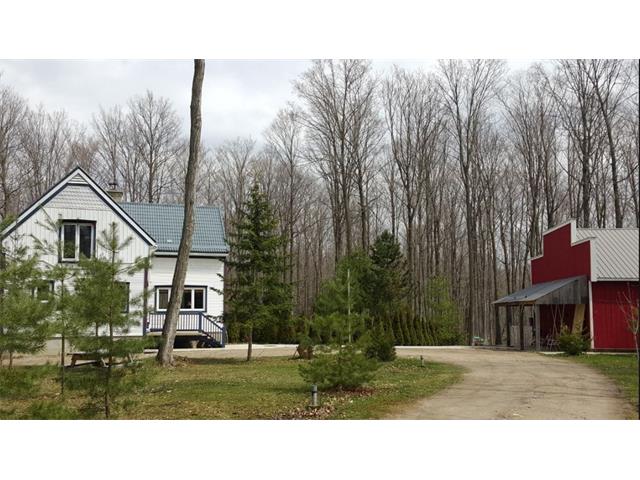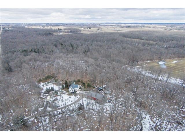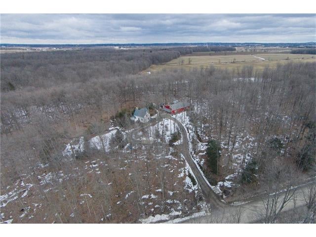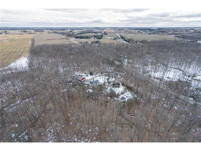 Check out the aerial video tour link!! RARE 29.5 acre offering just minutes to Waterloo! Immaculate retreat featuring 2.6km of backyard nature trails! Solid timber frame construction with 9 foot ceilings on the main floor and hardwood throughout. Entertainer's kitchen with island opens to spacious dining room. Two story Great Room with windows throughout and fabulous views of nature from living room or walkout deck. Upper level Master bedroom includes plenty of closet space with built-in sliding drawers and a separate office. Second loft style bedroom. Create 2 additional bedrooms by continuing the tongue and groove floor across the Great Room. Convenient main floor laundry/mudroom and modern bath with exposed brick detailing and glass shower. Unspoiled basement with separate walk-up entrance . Interior sprinkler system, new forced air furnace is 1 year old. Four year old outdoor wood furnace will heat the entire home using your propertys resources! Additional 30' x 60' garage workshop (half heated) with 11 foot ceilings. Shop contains 2 sliding doors for vehicle use, 100 Amp service, a 1pc bathroom (with 2pc roughed in) and a built-in scissor lift. A fantastic opportunity to live on an acreage close to the City!!